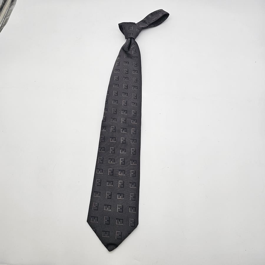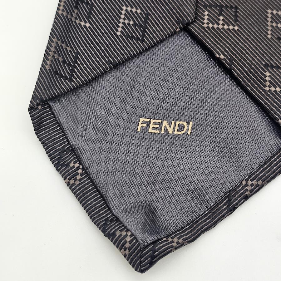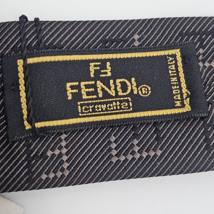 FENDI(フェンディ)のネクタイです。 全体にFFロゴ(ズッカ柄)が織り込まれた、落ち着いた色合いの総柄デザインです。イタリア製、シルク100%で上質な光沢感があります。 タグが付いたままの新品・未使用品として保管しておりました。ビジネスシーンやパーティー、プレゼントにもおすすめです。