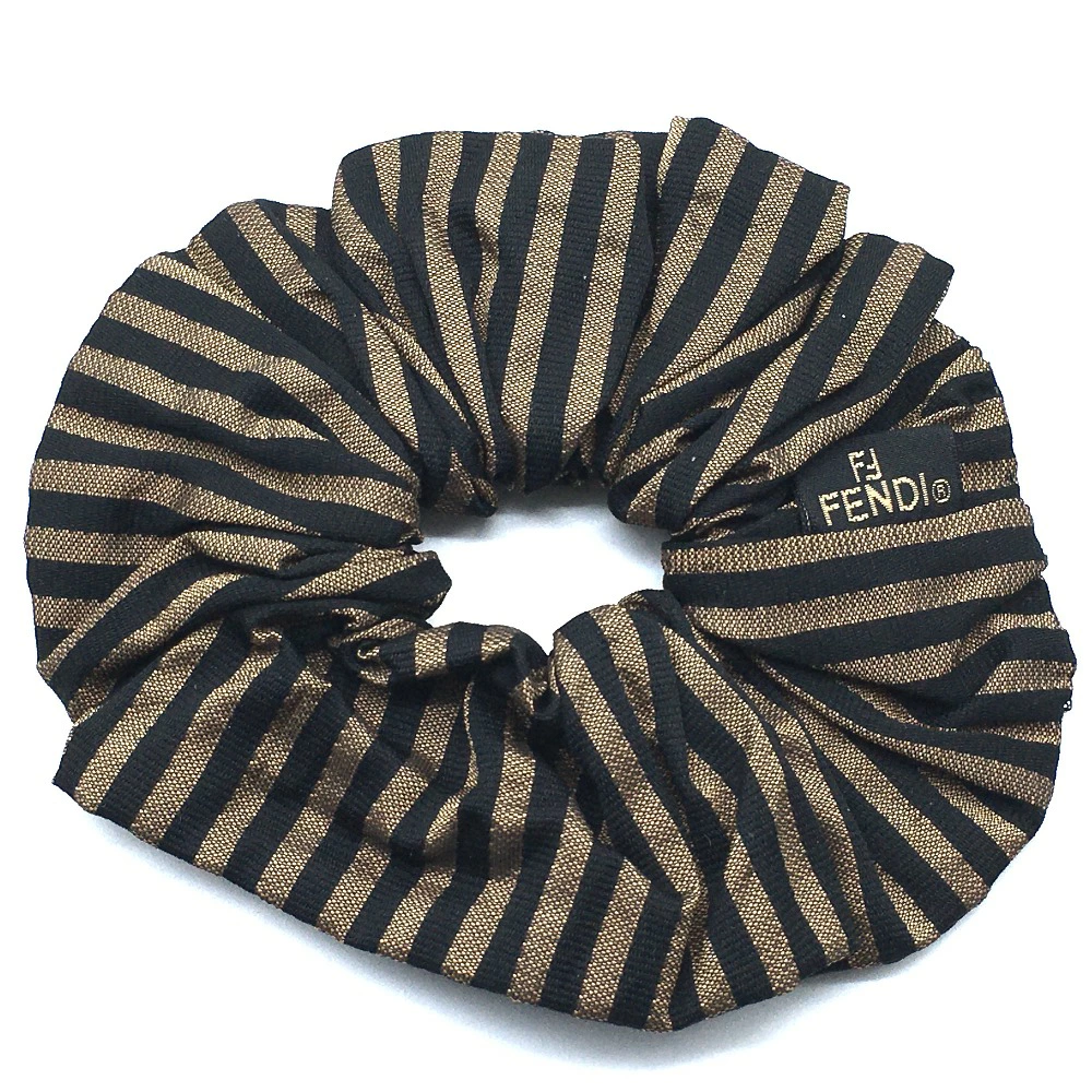 FENDI フェンディ ペカン シュシュ ヘアアクセサリー 髪まとめ ヘアゴム キャンバス レディース ブラウン ブラウン×ブラック 【中古】
