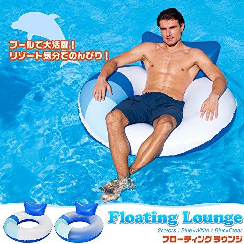 FIELDOOR フローティングラウンジ ブルー&ホワイト 115cm 背もたれ付き浮き輪 (幅115×奥行108×高さ55cm) フロート