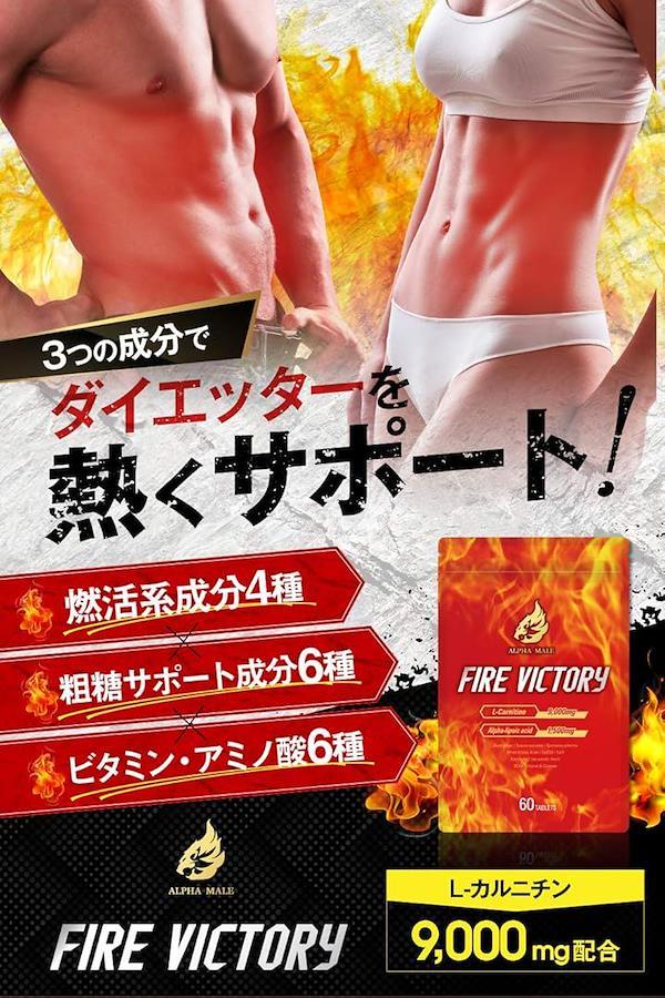 ・vダイエッターを熱くサポート。FIRE VICTORYは、バーニング成分4種、粗糖サポート成分6種、ビタミンアミノ酸6種を含んだダイエッターサポートサプリメントです。