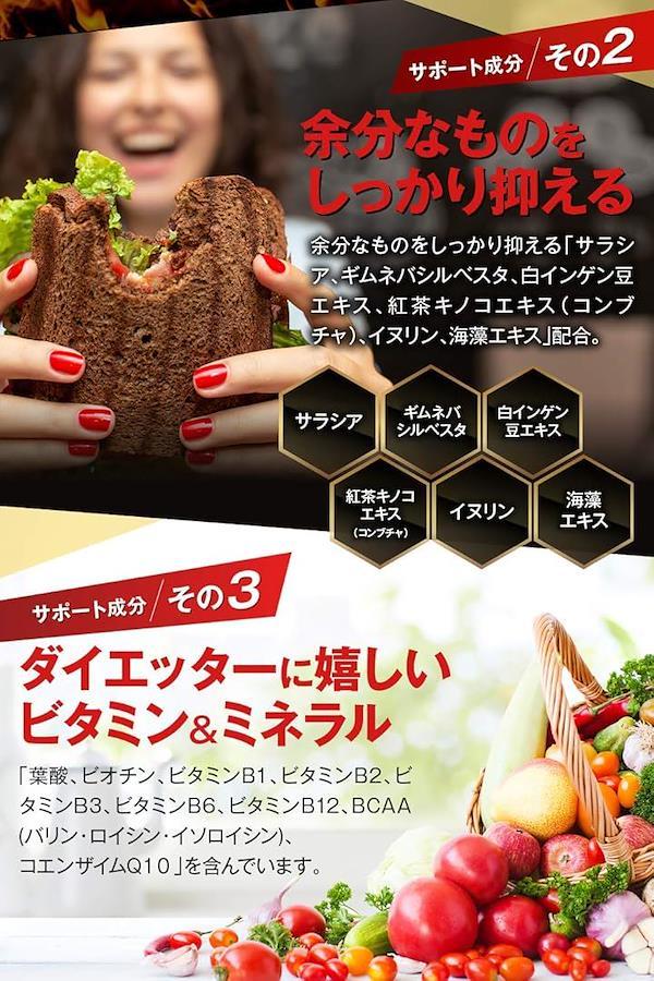 ・vダイエッターに欠かせないビタミン・ミネラルがたっぷり。葉酸、ビオチン、ビタミンB1、ビタミンB2、ビタミンB3、ビタミンB6、ビタミンB12、BCAA、コエンザイムQ10を配合。
