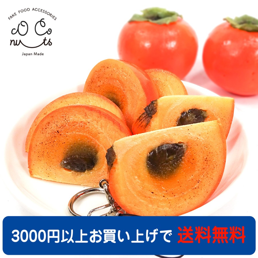 本物のカットした柿そっくりに作られた食品サンプルのアクセサリーです。