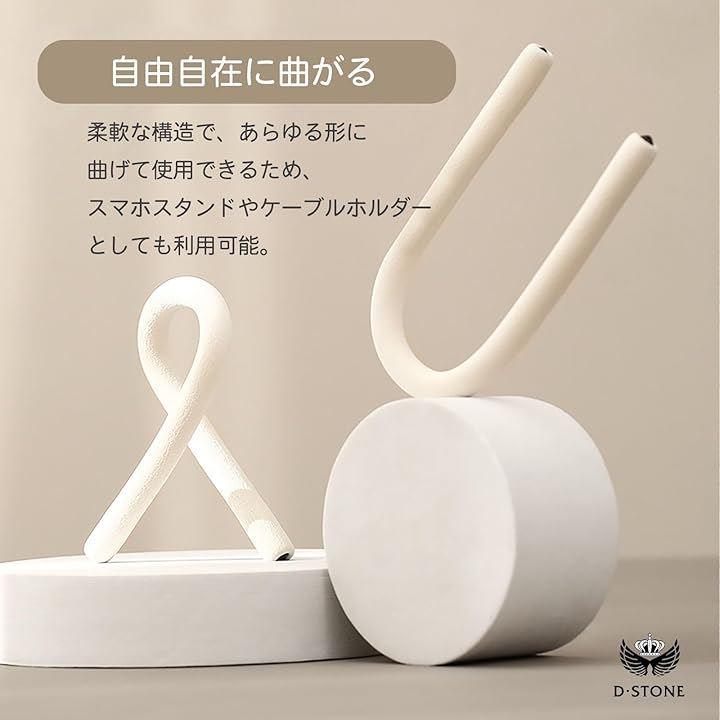 「特徴」 自由自在に曲がる: 柔軟な構造で、あらゆる形に曲げて使用できるため、スマホスタンドやケーブルホルダーとしても利用可能。