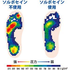 ソルボセインは、IPNs(相互貫入高分子網目構造)を持つ粘弾性高分子化合物で皮膚や筋肉と類似の分子構造を持つので足にかかる衝撃を優しくしっかりと吸収します。長時間使用しても違和感なくしっかりフィットします。