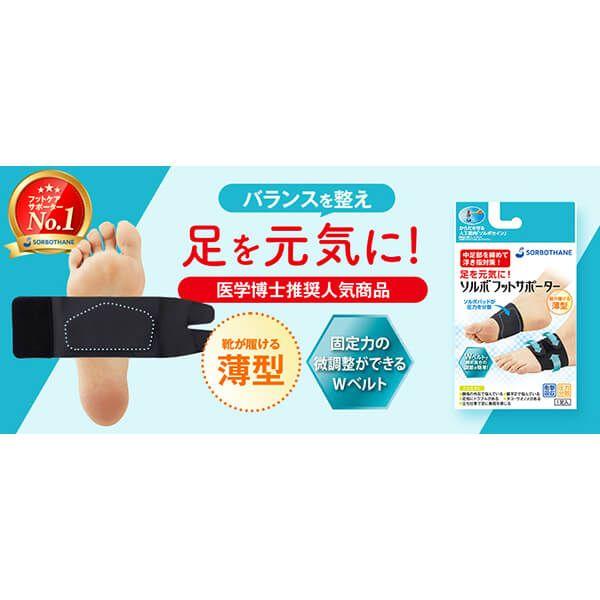 現代人は靴を履く事で、足裏のアーチ(土踏まず)が弱くなったり、足指を使って歩くことが減っています。ソルボフットサポーターは特に足の中足部と足のアーチをサポートすることで、バランス良く足全体を使った正しい歩き方が自然に出来るようになります。