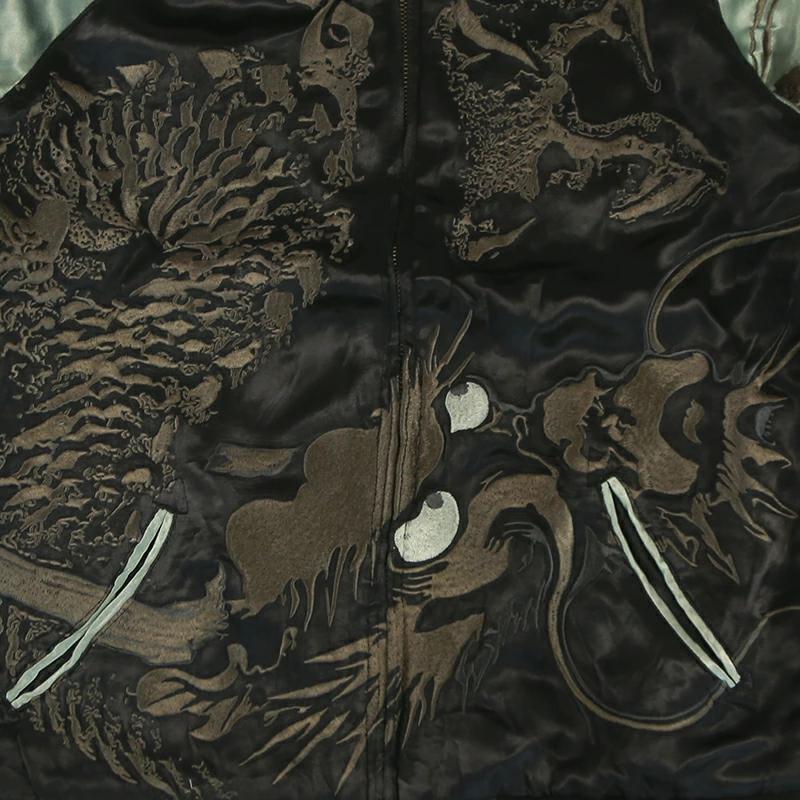 なお、レーヨンの性質上と加工による糸切れや糸とび、染め傷等が発生致します。それもレーヨンスカジャンの味としてご理解下さい。
