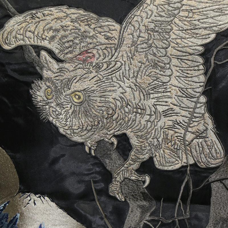 白木兎 シロ ミミズク 柄 和柄スカジャンです。