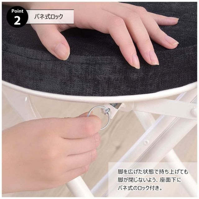 ●脚を広げた状態で持ち上げても脚が閉じないよう、座面下にバネ式のロック付き。