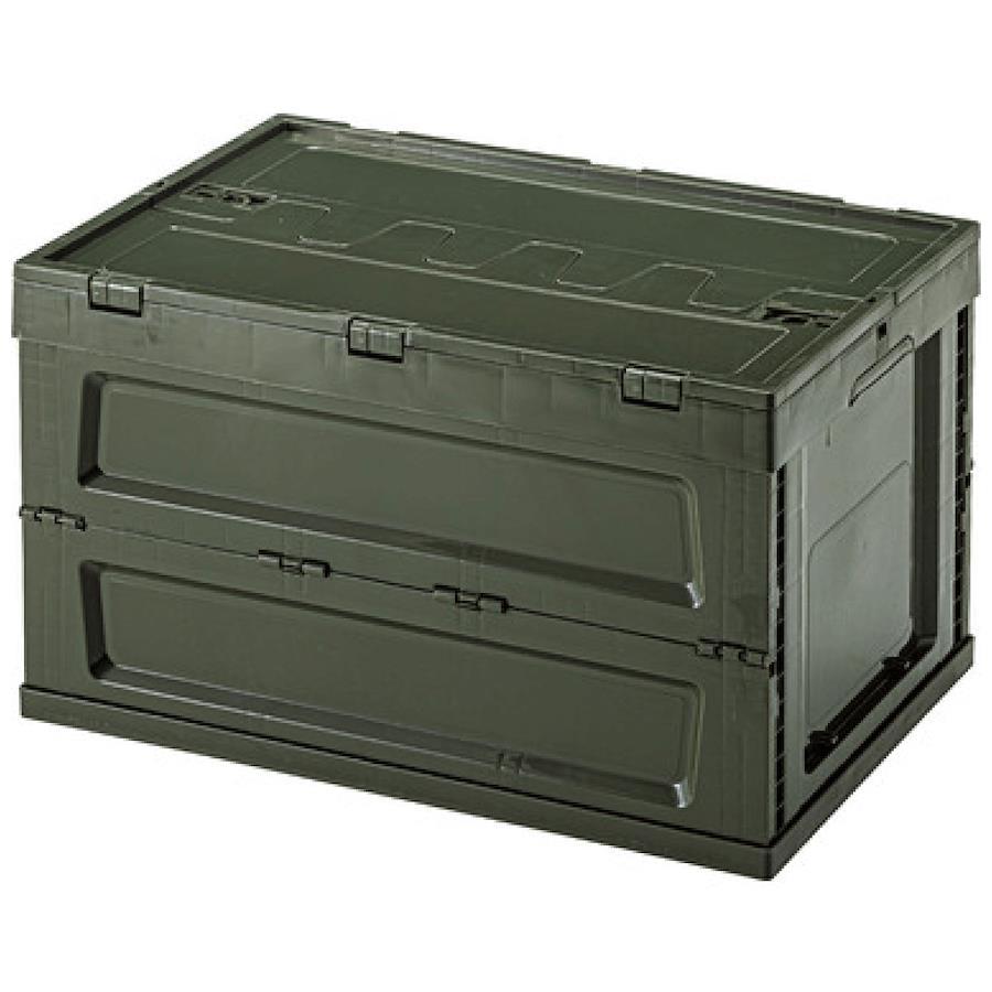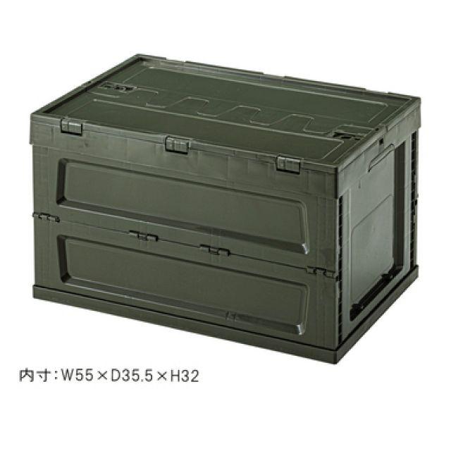 ●アーミーテイストで機能性抜群、収納&持ち運びに便利なフォールディングコンテナ。●積み重ねて置けるスタッキング仕様なので、効率よく収納する事ができます。●折りたたみ(フォールディング)式なので、使わない時は折りたたんでクローゼットや車の荷台にスッキリ収納。●蓋は本体との一体型で観音開きタイプ。アウトドア・キャンプ等でうっかり蓋を無くしてしまった、という心配もありません。●蓋の先端に交互に噛み合わせがあるタイプなので、隙間なく蓋を閉じる事ができホコリ等の侵入も防いでくれます。●また蓋の上部と本体側面の内側にロック機能が付いているので、移動中も蓋をしっかりとロックしておくことができて安心です。●アウトドアやキャンプ、ガーデニングから屋内収納まで幅広く活躍するフォールディングコンテナ。ブラックグリーンベージュ〈製品規格〉【商品サイズ】外寸サイズ:幅59×奥行40×高さ35.5cm折りたたみ時:幅59×奥行40×高さ9cm内寸:幅55×奥行35.5×高さ32cm【材質】ポリプロピレン【組立】完成品【生産国】中国