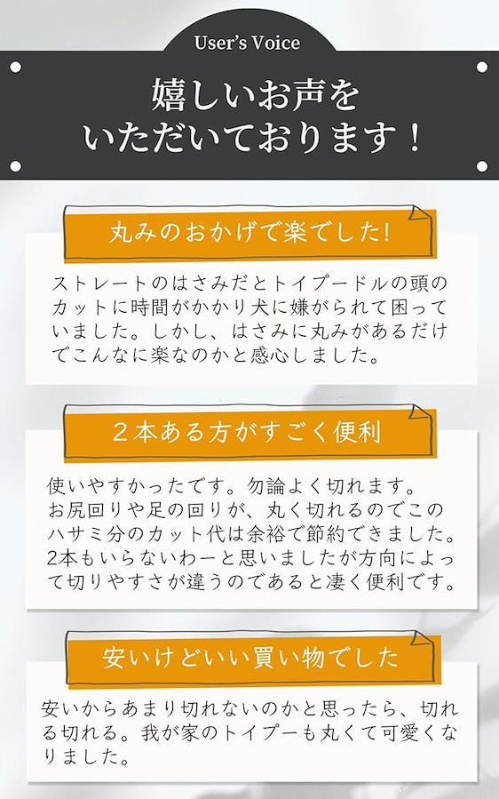 ・トリミングに連れていくには早いけど、顔周りや足先の毛が気になるな・・ということはありませんか? このはさみがあれば大事なワンちゃんを傷つけることなく、 いつもきれいに可愛くしてあげられます。