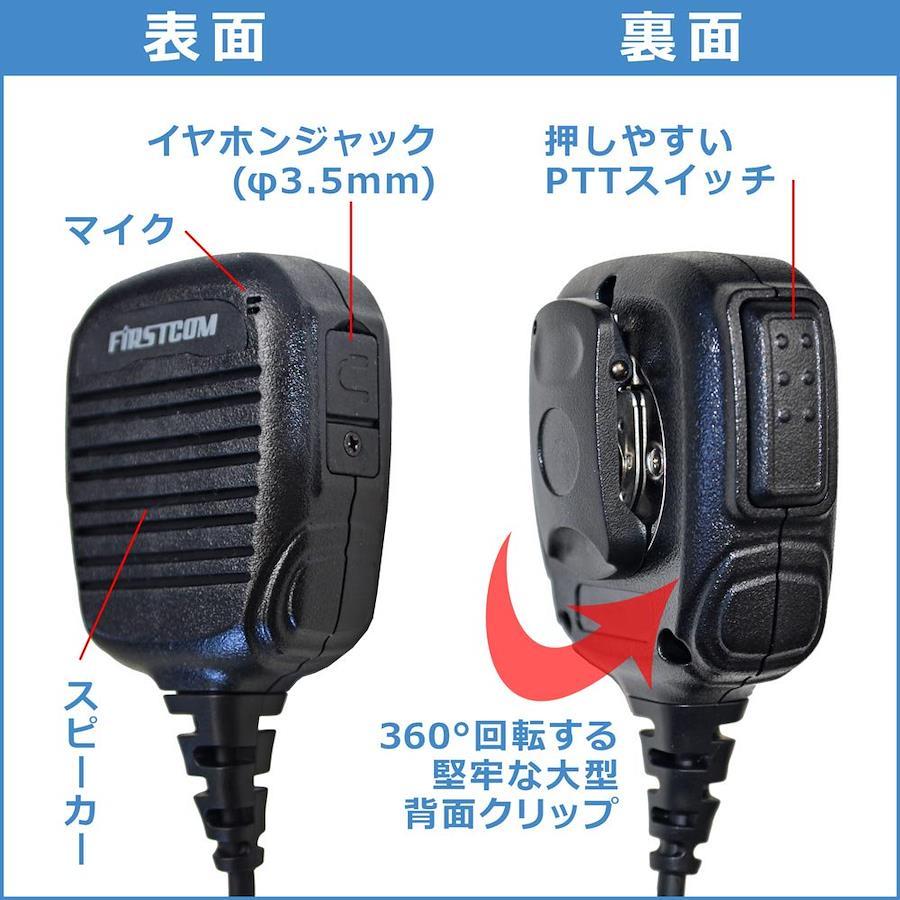 ●360°回転する背面クリップ。襟など、操作しやすい所に装着します。