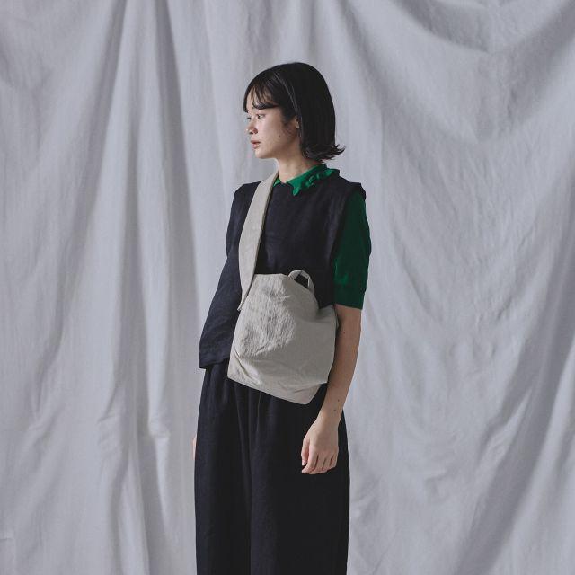 滑らかな生地感で摩擦感が少なく、広幅のショルダーが肩に食い込みにくく斜めがけしやすいデザインです。