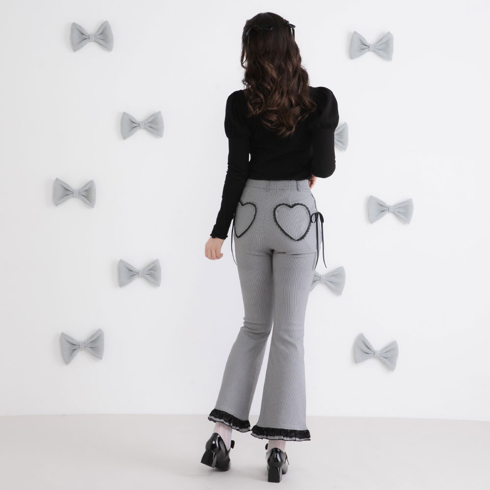 ヒップのポケットはハート型になっており、後ろ姿も抜かりなく可愛いデザイン♪