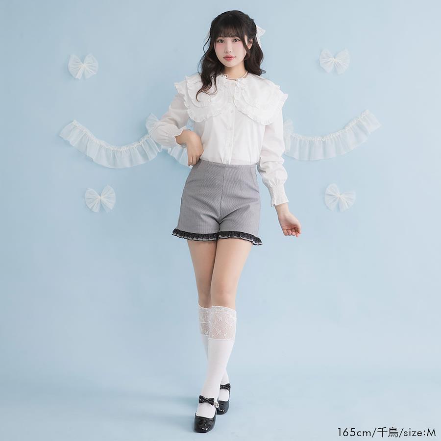 シンプルながら裾フリルがかわいい定番ショートパンツ。