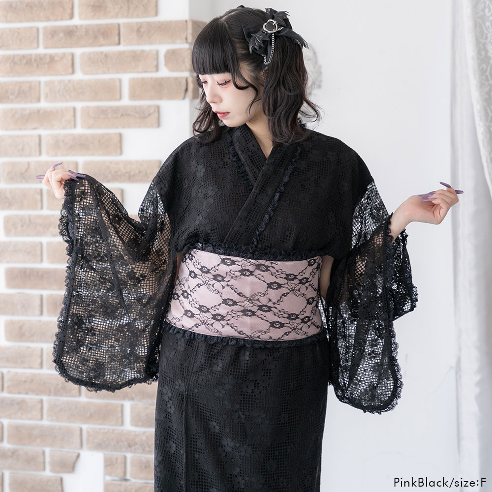 【デザイン】レース重ねがかわいらしいデザイン帯。帯の上下にもレースを施しており、どんな浴衣にもあわせやすいアイテムです◎背中の作りリボンも大きめのダブルリボンで、プレゼントのリボンみたいに可愛いです。