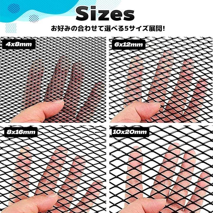 「サイズ」網目のサイズはお好みの合わせて選べる5サイズ展開. 3 x 6mm/4 x 8mm/6 x 12mm/8 x 16mm/10 x 20mm