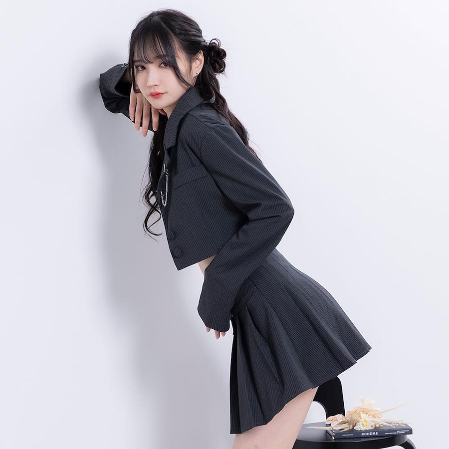 ブラックは柔らかいカットソー素材、ピンストライプはややハリ感があります。</