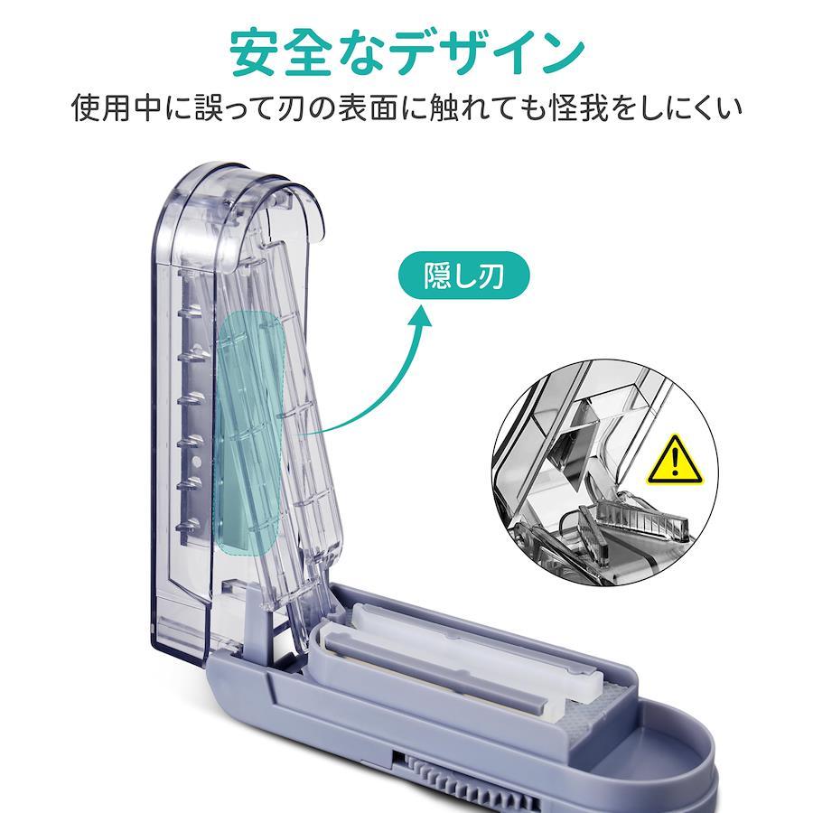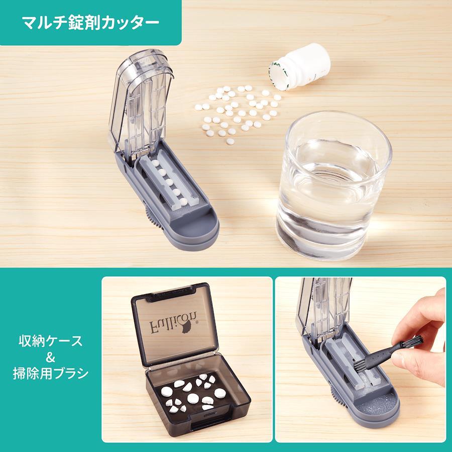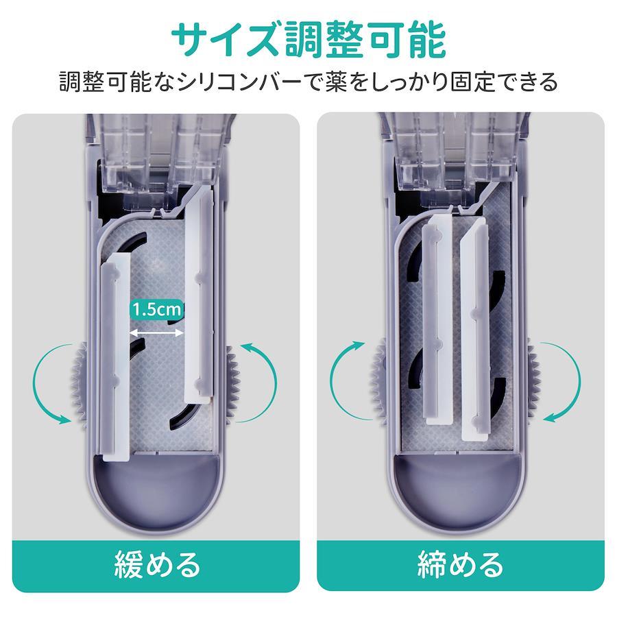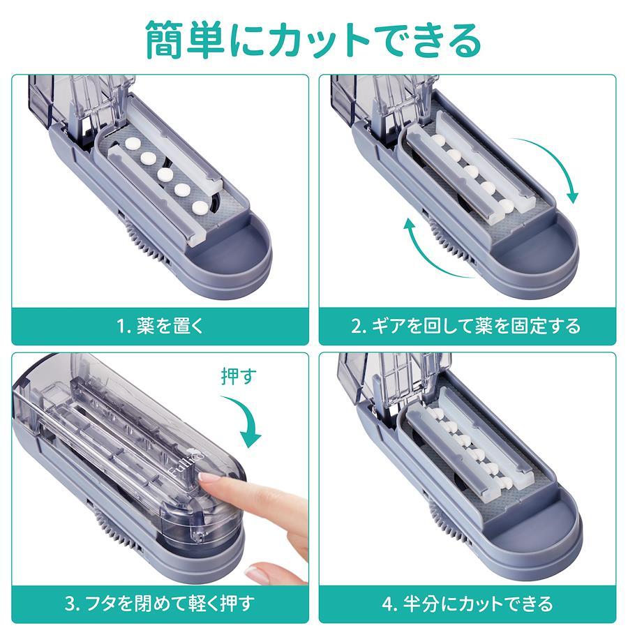 ??【製品仕様】セット内容:ピルカッター1個+収納ケース1個+掃除用のブラシ1個。サイズ:[ピルカッター]10.5 x 3.8 x 3.5 cm。[収納ケース]4.5 x 4 x 1.8cm/個。重さ:[ピルカッター]77.1g。[収納ケース]7.5g/個。 ??【複数の錠剤を一度にカット】1日の摂取量が多い方に最適。複数の薬やサプリを一度にまとめて効率的に分割できます。何度もカットする手間が省けます。1日分の作業を一度に済ませたい方にぴったりです。 ??【安全安心】刃が隠れる仕様のため、子供に取られてしまっても、手を傷つける心配がございません。高齢者が誤って指を切るリスクも軽減できます。 ??【精度アップ】側面と底部に滑り止めシリコンゴムが付いており、錠剤を正確な位置にしっかり固定してカットできます。カット位置のずれや錠剤の飛散のリスクなく、正確に薬を割ることができます。 ??【サイズ調整可能】最大幅1.5cmの錠剤に対応しており、錠剤がピルカッターに入らない問題なく分割できます。 ??【錆びにくい】錆びにくいステンレス鋼の刃を採用しているので、長時間使用しても、錆が生じません。 ??【掃除用ブラシ&収納ケース付き】ピルカッターのほかに収納スペースがあり、割った薬を収納できます。外出先での使用に最適です。さらに、掃除用ブラシも付属しているので、錠剤の粉を掃除するときも便利です。