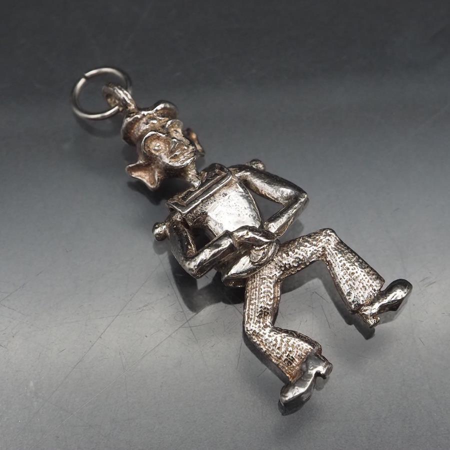 手足が動く仕組みになっています。おそらく銀製かと思いますが、刻印が無いため断言できません。画像をたくさん掲載しておりますのでそちらでご確認とご判断をお願いいたします。