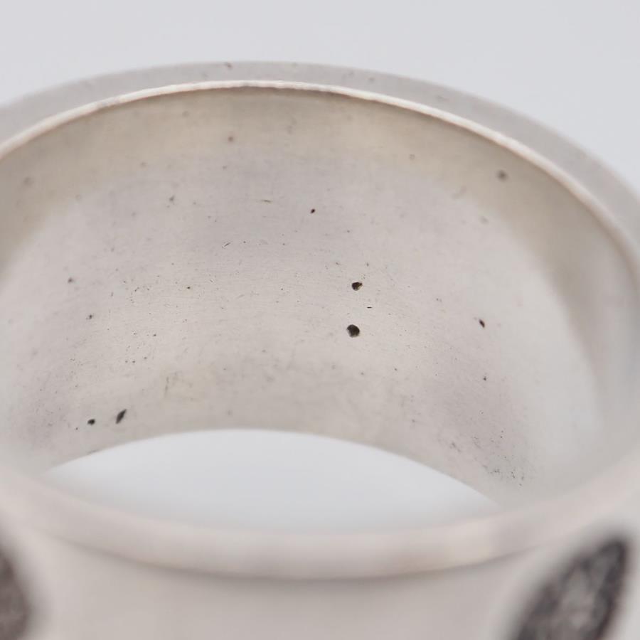 おそらく銀製かと思いますが、刻印が無いため断言できません。画像をたくさん掲載しておりますのでそちらでご確認とご判断をお願いいたします。