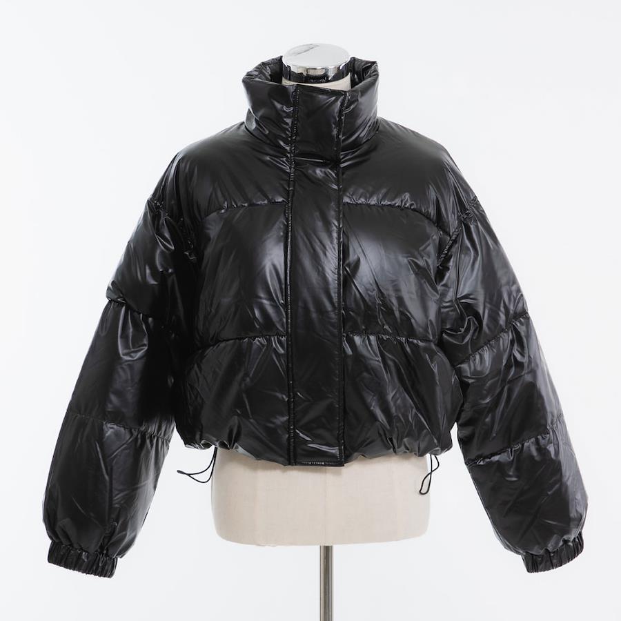 ◆Designキラッとした光沢のある素材が特徴的で、インパクトのあるデザインが目を引きます。両脇裾にある絞りでキュッとコンパクト丈に◎襟元はハイネックデザインで風を通しにくいです。ストリート系やカジュアルスタイルにぴったり。内側には中綿がしっかりと詰められていて、防寒性に優れています。