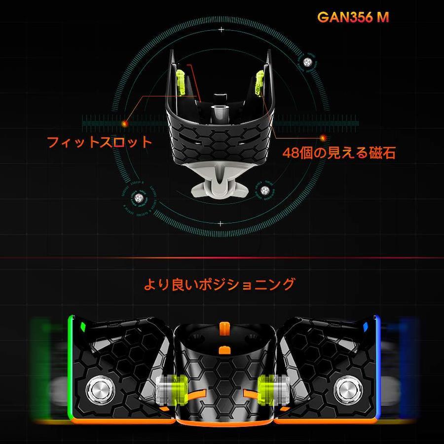 【費用対効果がいい】値段がフラッグシップ程高くはないですが、最新のメカニズムを備えたGANのキューブが欲しくなったことはありませんか? 今それが手に入ります!GAN 356 Mはしっかりした質感で安定感がある、角の切れが良くシャープな切り口がある、軽くスムーズな回転感があるの特徴を備えている中価格帯の新しいキューブで、あなたの要望に応えます。【磁石内蔵】磁力のアシストにより動かしやすくなり、中途半端な力加減でもきれいに回せて、タイムの向上につながります。角が揃わずに生じるストレスをなくすとともに、回す際には引っかかりがなくピタッと止まってくれるので、大会でのタイムロスを防げます。なによりスムーズに動かしやすいので回す動作自体に快感を感じる方も多いです。【初心者におすすめ】このキューブは軽く回しやすいので、初心者の方におすすめです。磁石の力がコーナーの切れを良くしてくれるので、回し始めはスムーズです。磁石入りのキューブを選ぶことで、上達スピードが向上し、指使いが美しくなります。キューブ初心者でも、はじめから「ある程度速くなりたい」という気持ちがあるならおすすめです。【スムーズで丈夫】キューブの回転のスムーズさは我々の誇りであり、寿命を延ばすためにいくつかアップグレードをしています。内部の面とコーナーキューブの足がハニカム構造になっていることで摩擦を軽減し、潤滑剤を長持ちさせることができます。またこの最高水準のコーナーの足があることで最高のコーナーカット、耐ポップ性、耐ピボット性を維持しています。ネジとパーツとの接触面や、他のパーツとの接合部分はシームレスになっているため、お子様が雑に扱っても分解しないようになっています。【PDF版解説書付き】 この商品には、基本の回し方から紹介した上級テクニックまで詳しく解説したPDF版のマニュアルが付属しています。写真とイラストを多用し、分かりやすく解説しています。いつでもスマートフォンやパソコンで見ることができるので、実践しながら学習できて便利です。キューブの楽しみ方がよくわかる攻略です。【世界から日本へ、GANの挑戦は続く】 全日本大会から世界大会へ、GANキューブはあなたの世界チャンピオン獲得の夢を叶えるパートナーとなります。GANを選ぶということは、業界トップクラスの品質を体感できるということです。12ヶ月間の安心保証と親切なカスタマーサポートで、GANキューブの楽しさを全力でサポートします。【免責事項】メーカーによる商品リニューアルに伴いパッケージ(内容量も含む)変更が行われた場合、新パッケージでお届け致します事ご了承願います。