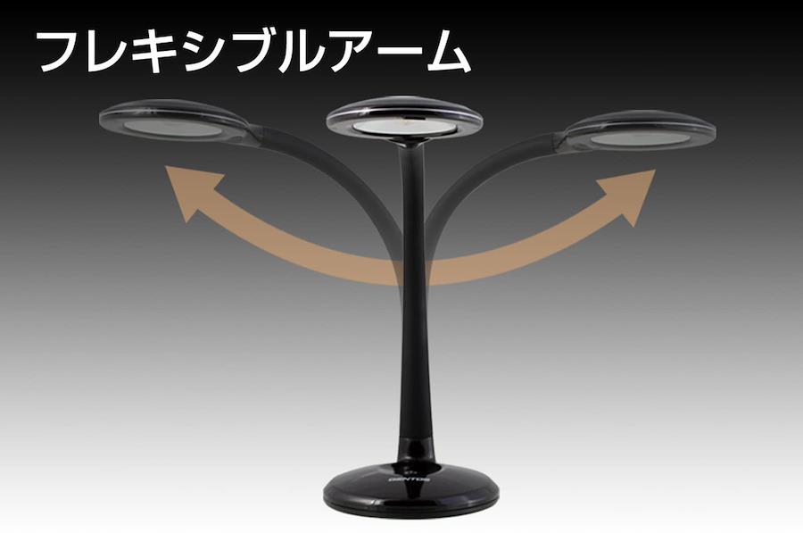 フレキシブルアームで光の方向・向きを自由に調節できる光のチラツキを抑制する直流電源回路設計軽く触れるだけのタッチセンサースイッチサイズ:約幅130×奥行270×高さ285mm、本体重量:約890gセット内容・付属品:本体、ACアダプター明るさ:High/520ルーメン、Mid/320ルーメン、Low/150ルーメン、直下照度(30cm最大時):2380ルクス電源:ACアダプター(入力:AC100-240V 50/60Hz、出力:DC10V 600mA)入力電圧:DC10V、入力電流:600mA、消費電力:6W