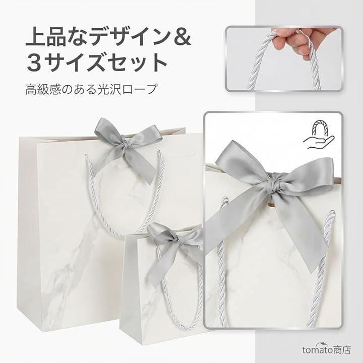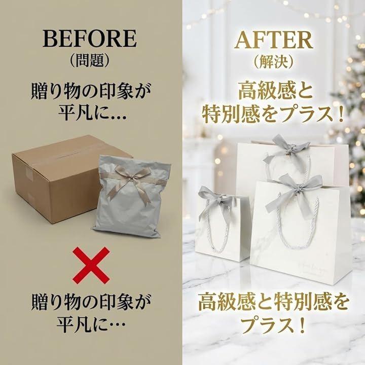 「贈り物の印象を高める」お祝いや感謝の気持ちを込めたプレゼントを、この上品な白色の手提げ袋で一層特別なものに。