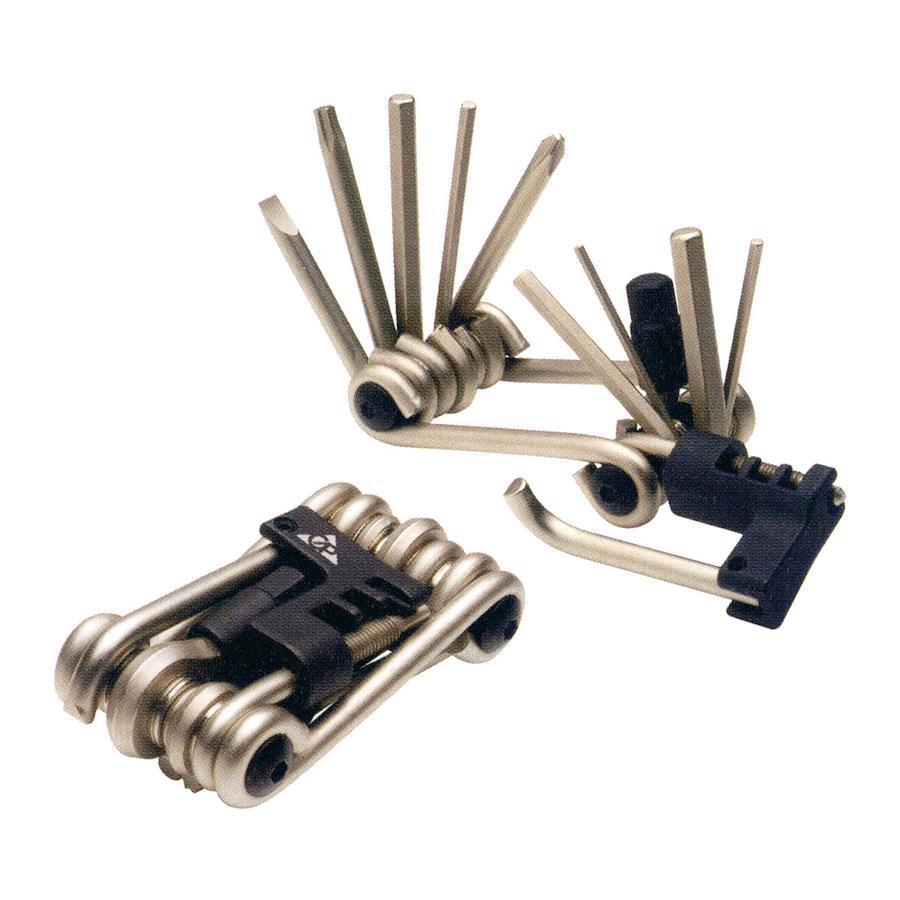 クロムバナジウム“Torx"レンチ:T25六角レンチ:2、2.5、3、4、5、6、8mmチェーンツール:シマノHG(6~10速)、UG、IG、カンパニョーロ(~10速)対応(+)ドライバー(-)ドライバーL75×W38×H27mm200g
