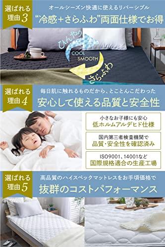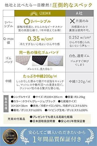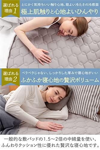 【心地よいひんやり接触冷感】熱伝導率が高い生地で、肌に触ると冷たく感じます。Q-Max値0.35で一般的な寝具の生地より約3倍ひんやり。冷たすぎるのが苦手な人にもお使いできるように独自ブレンド生地採用。冷房との併用でひんやり度がUP!寝返りでひんやりが持続し、朝までサラサラ快適に眠れます。 【冷感+さらふわ 両面仕様でお得】暑さや湿気を感じたときはひんやり素材で、春秋にはなめらかピーチスキン面の利用。気候に合わせて裏と表を使い分け。1枚で長く快適に過ごせるから1枚2役でお得!収納場所にも困らない! 【ふんわり中綿で寝汗をキャッチ】200g/㎡の中綿は一般的な敷きパッドの1.5~2倍以上。あせもや肌荒れを引き起こす原因となる寝汗や皮脂をしっかり吸収。マットレスや敷布団への浸透を防ぎ清潔さを保ちます。 【取り付け簡単】四隅はしっかり固定強化ゴムバンド付き。寝返りしてもズレにくい。つけ外しも簡単で敷布団・マットレスどちらも装着可能。生地と同一カラーで見た目も〇。 【洗える×速乾】汚れても洗濯機ですぐに丸洗い可能。乾きが早いので常に清潔に。【安心品質】国際規格に 適合した生産工場で製造、低ホルムアルデヒドでお子様にも安心。 【商品仕様】シングルサイズ約100cm×205cm、重量約1.25㎏ ●化粧箱サイズ16×16×38cm ●付属品:取扱説明書 ●プレゼントにも最適な高級化粧箱 ●カラー:ホワイト/グレージュ/ブラック ●安心の1年間保証書 【素材】表地:冷感ポリエステル50%冷感ナイロン50%、中綿:ポリエステル100% 裏地:ポリエステル100%(ピーチスキン加工)●製造国:日本企業開発/イタリアデザイン/中国専用工場生産【パッケージリニューアル】ご注文のタイミングにより、旧パッケージが届くことがありますが、品質や素材に変更はありません。