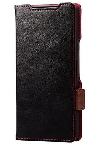 Google Pixel 7a ケース ソフトレザー カバー 手帳型 マグネット フラップ 衝撃吸収 スリム ストラップホール付 スタンド機能付 ステッチ ブラック PM-P231PLFYBK