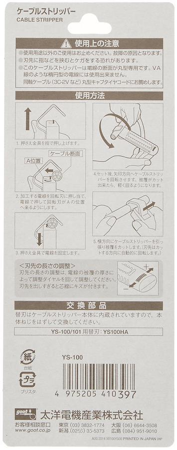 3営業日以内に発送≪新品未開封品≫:goot(グット) ケーブルストリッパー YS-100スタイル: 適用電線径:外径φ4?16mm