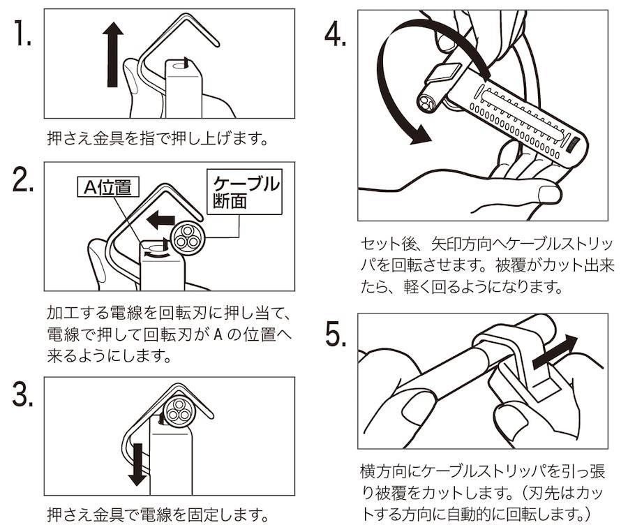 ストリップサイズ:Φ4-16mm仕様:丸型ケーブル専用刃先はカットする方向に自動的に回転します。刃部が表面に出ていない設計です。替刃が本体に内蔵されています。
