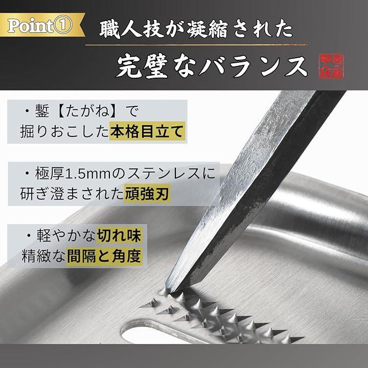 「燕三条製」新潟県燕市にあるおろし金職人工場にて製造された職人技が凝縮されたこだわりのおろし金