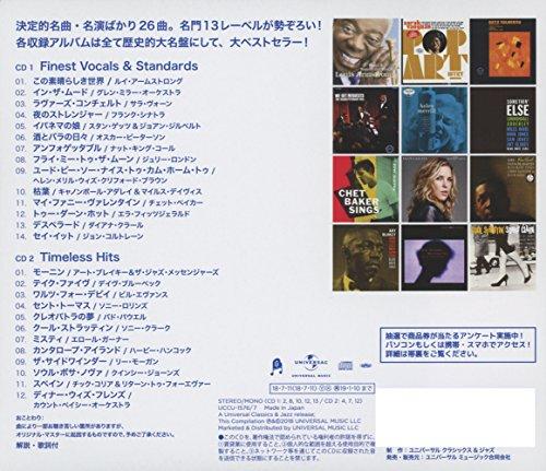 通常1-5営業日で発送:内容紹介 最上級の名曲と名演。ジャズのすべてがここに。 決定的名曲・名演ばかり26曲。 名門13レーベルが勢ぞろい! 各収録アルバムは全て歴史的大名盤にして、大ベストセラー! ◆マイルス・デイヴィス、ジョン・コルトレーン、ビル・エヴァンスといったジャズ史上の巨匠アーティストによる歴史的名演から、TVCM、ドラマ・映画で使われた楽曲、そして、ダイアナ・クラールのような最近のヒット曲までを網羅。 ◆収録曲はすべて決定版であるオリジナル録音ヴァージョン。昨年のジャズ・レコード1周年を経て、この先1年後まで残したい楽曲を厳選しました。 ◆クラシック編『GREATEST CLASSIC』(UCCS-1234/5)も同時発売。 曲目 Disc 1 - Finest Vocals & Standards 1.この素晴らしき世界 / ルイ・アームストロング 2.イン・ザ・ムード / グレン・ミラー・オーケストラ 3.ラヴァーズ・コンチェルト / サラ・ヴォーン 4.夜のストレンジャー / フランク・シナトラ 5.イパネマの娘 / スタン・ゲッツ&ジョアン・ジルベルト 6.酒とバラの日