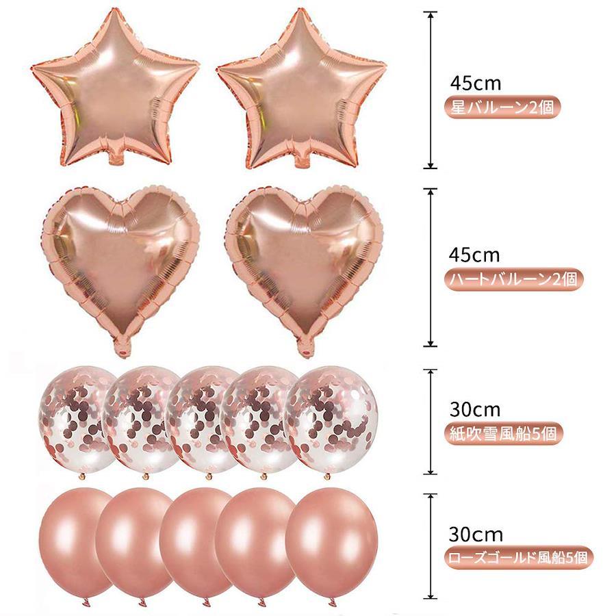 ★誕生日、結婚式、記念日、プロポーズ、歓迎会、パーティー、祭りなどなどのイベントを飾り付け、パーティを盛り上げ、上品さと可愛さを兼ね備えたローズゴールドバルーンセットです。★ローズゴールド風船セット内容(取り扱い:対象年齢6+以上):紙吹雪風船(約30cm)×5個;ローズゴールド風船(約30cm)×5個;ハートバルーン(約45cm)×2個;星バルーン(約45cm)×2個。★ローズゴールドの色合いで、高級感が溢れ、キラキラと光沢があり、キレイな風船セットです。子供や大人の誕生日パーティー、結婚式等にも適応します。使用方法も簡単で、お子様と一緒に誕生日パーディーを準備する過程も楽しみます!★環境人体に安全で無毒・無害の高品質材料で作られ、厚みがあって破裂にくく長く持つことができます。ご安心くださいませ。【免責事項】メーカーによる商品リニューアルに伴いパッケージ(内容量も含む)変更が行われた場合、新パッケージでお届け致します事ご了承願います。