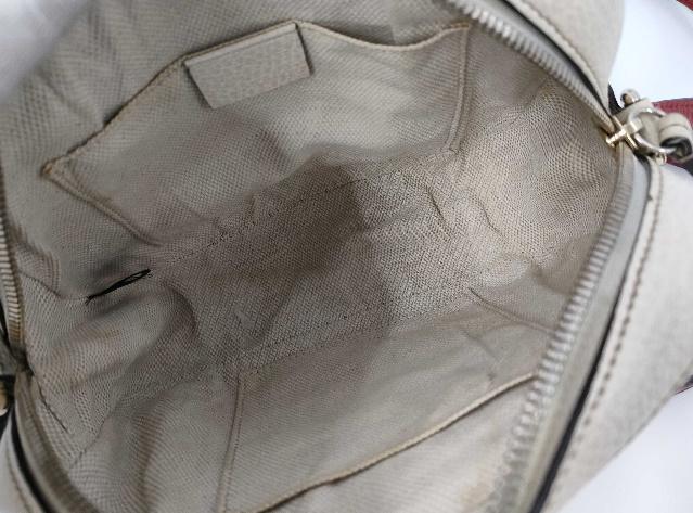 グッチの人気ライン「ソーホー」から、バイカラーデザインが印象的なショルダーバッグです。大きめのGGロゴがフロントに型押しされ、シンプルながら存在感のあるデザイン。デイリーユースはもちろん、旅行やお出かけにも活躍します。