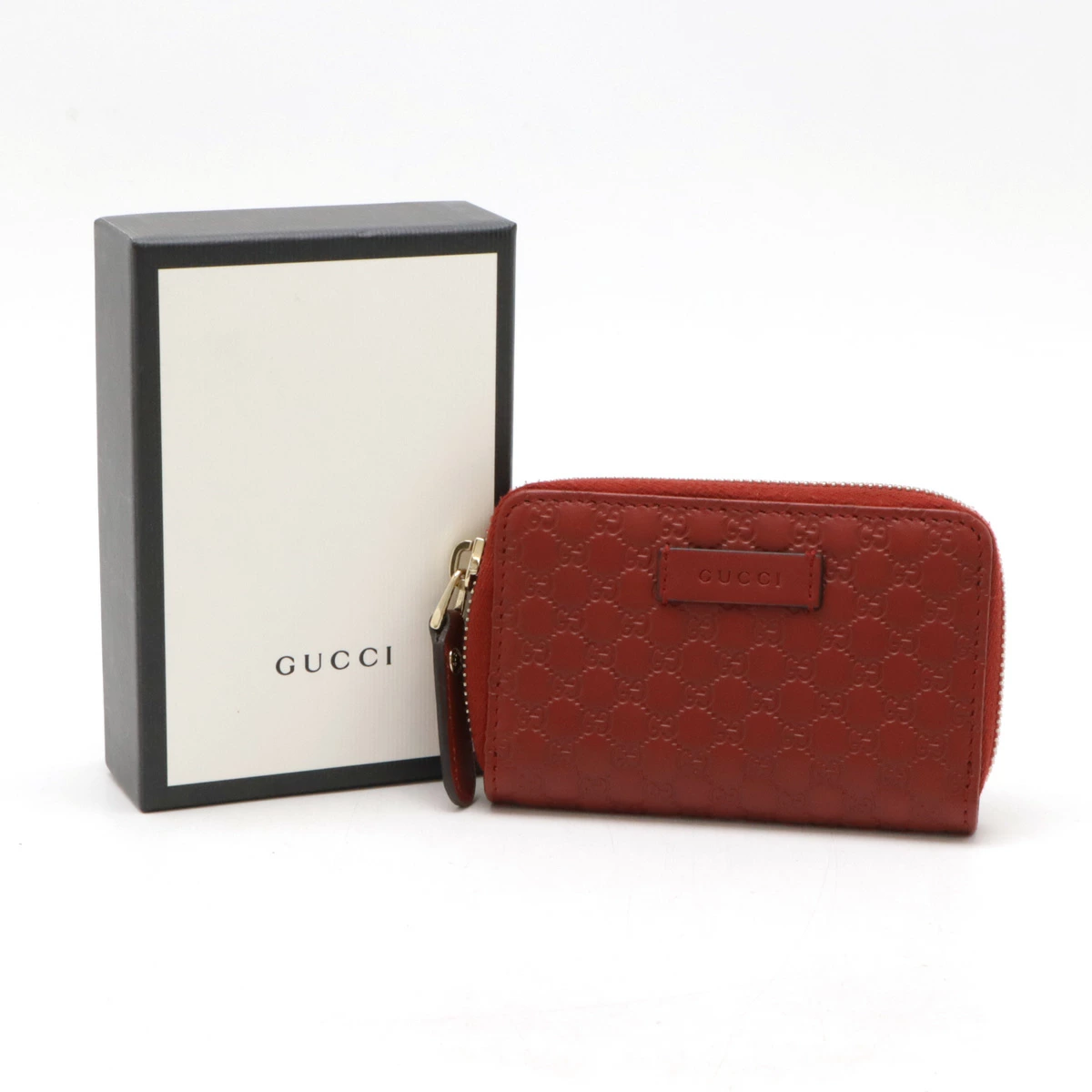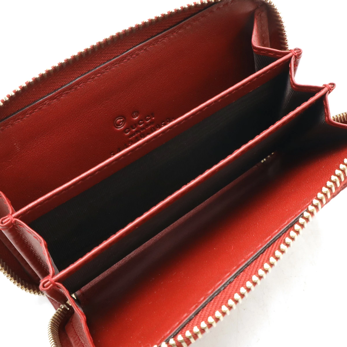 GUCCI グッチ マイクログッチシマ ラウンドファスナー コインケース 小銭入れ コインパース レザー レッド 赤 ゴールド金具 アウトレット品 544249 【中古】