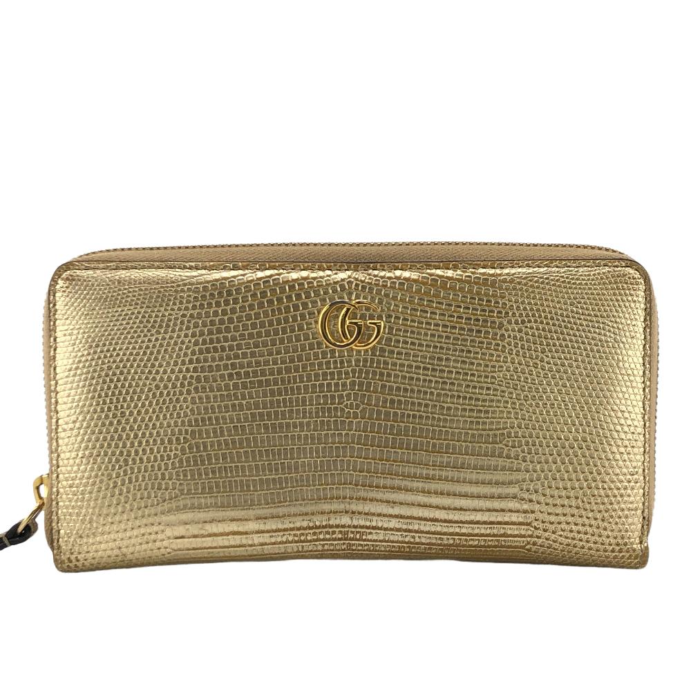 商品名 | GUCCI/グッチ 456117 GGマーモント ラウンドファスナー 長財布 ゴールド レディース |