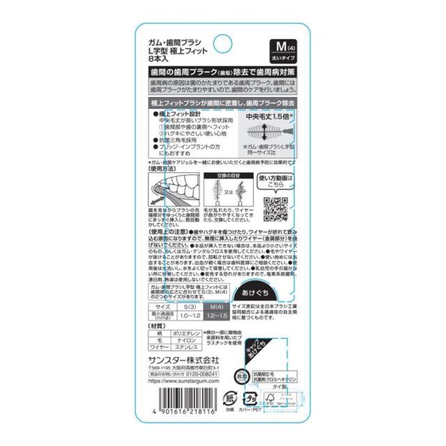 ◆商品名:GUM(ガム)歯間ブラシL字型極上フィット奥歯の歯間歯の隙間すき間歯の裏側ケアワイヤータイプ[サイズ:M(4)]8本入ブリッジインプラントの方にハグキにやさしいバレルカットタル型樽型