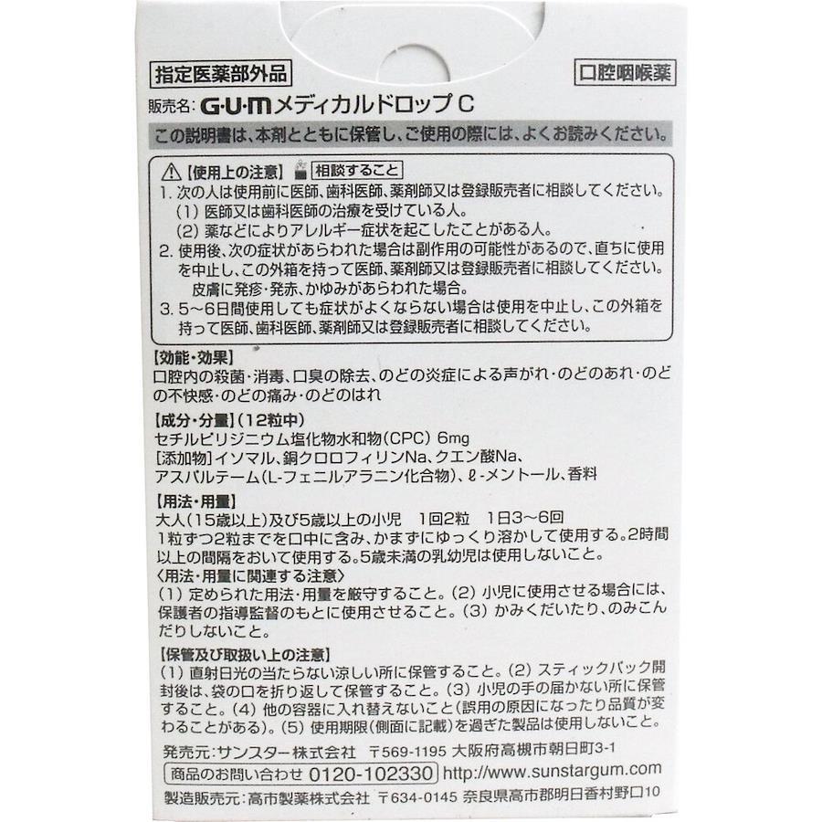 殺菌成分CPC(セチルピリジニウム塩化物水和物)が効果的に「お口」や「のど」の原因菌を殺菌・消毒します!口臭を除去し、のどの炎症に伴う荒れ・痛み・ハレなどを抑えます。●ドロップタイプなので、お口にゆっくり殺菌成分CPCが拡がります。●歯にやさしいシュガーレス(甘味料としてイソマル、アスパルテーム(L-フェニルアラニン化合物))。●携帯に便利なスティックパウチ(4粒入り)で場所を選ばず使用できます。・お口の中で細菌が増殖しやすい食間など のどの不快感を感じた時・お口のにおいが気になる時・食後などお口をすっきりさせたい時