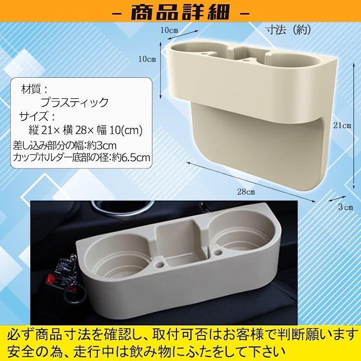 参考対象車種:コペンL880KLA400S660ビートカプチーノその他軽自動車、小型車、スポーツカー、ファミリーカーなど、差し込むスペースがあれば適合します寸法:横21cm 縦28cm カップホルダー部の幅:約10cm 差し込み部分の幅:約3cmカップホルダー底部の径:約6.5cm*必ず商品寸法を確認し、取付可否はお客様で判断願います