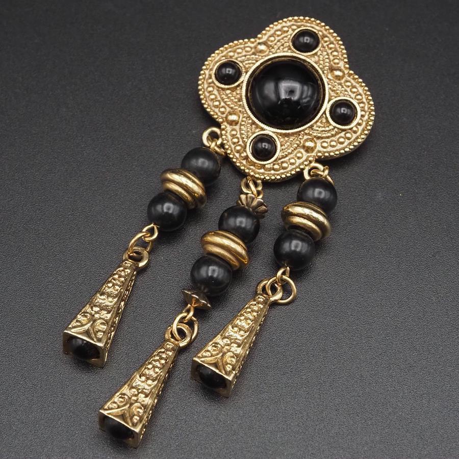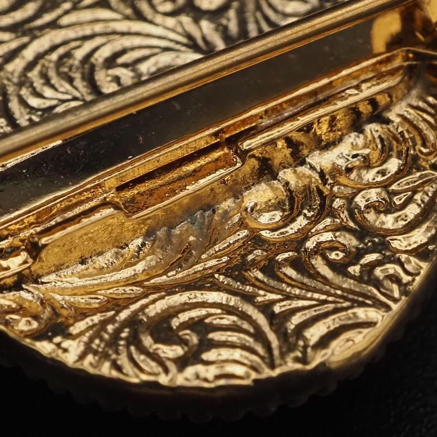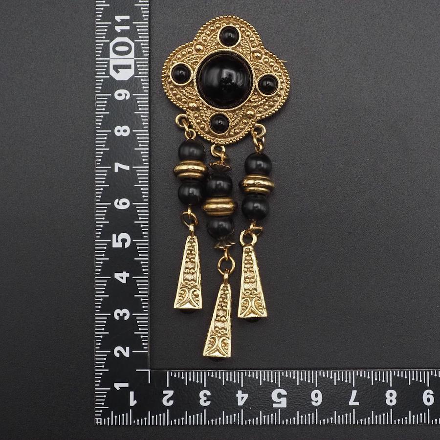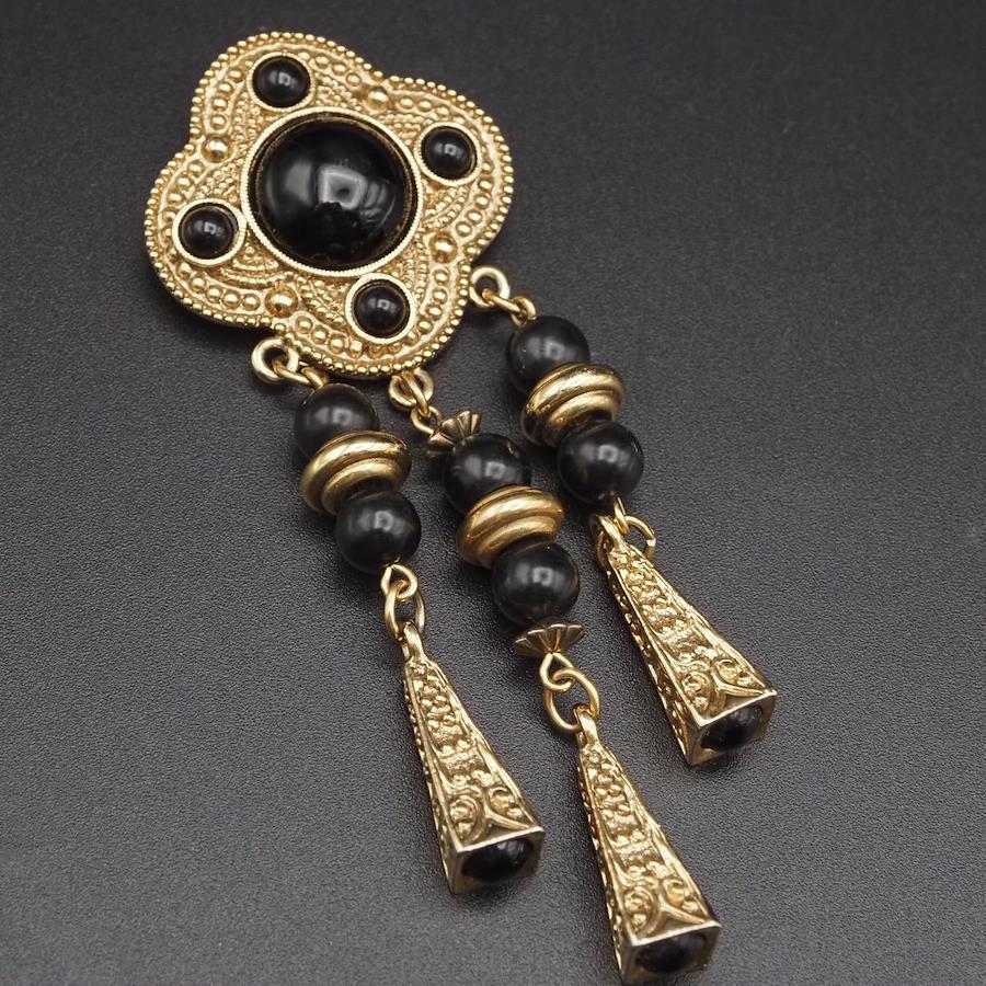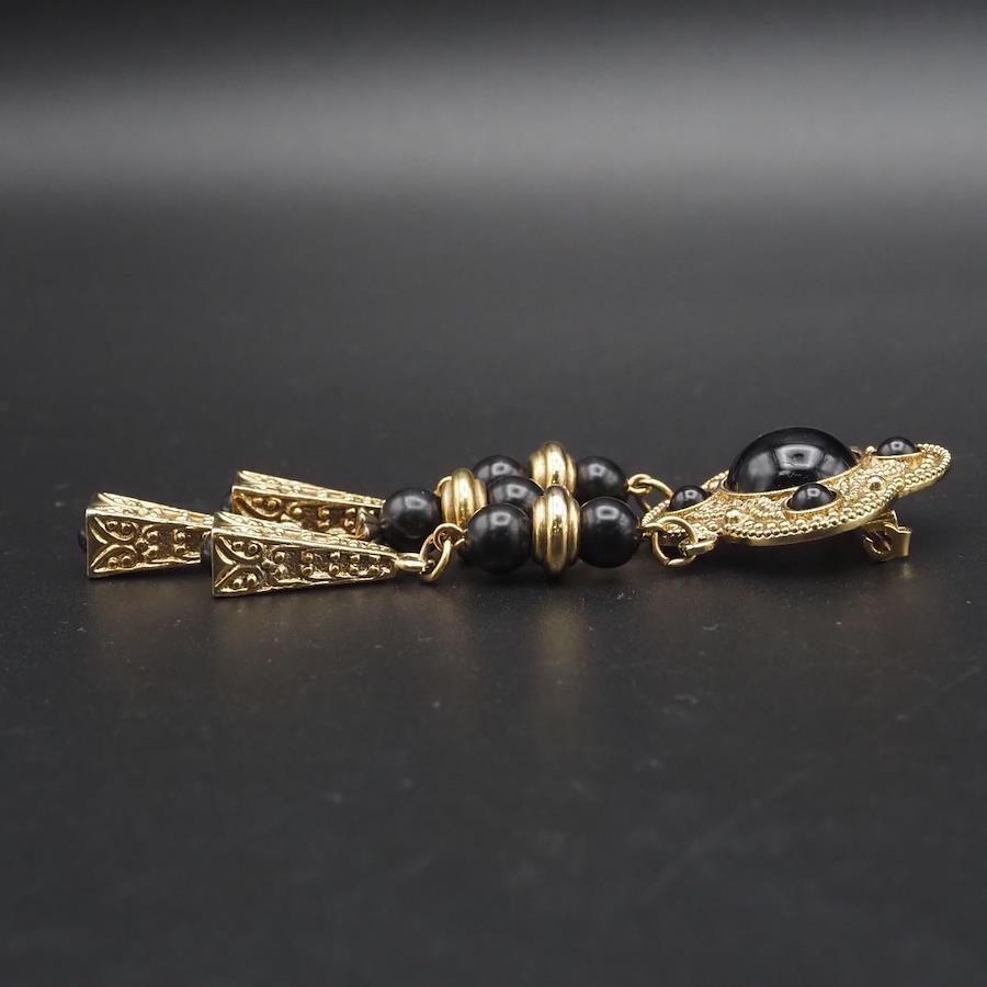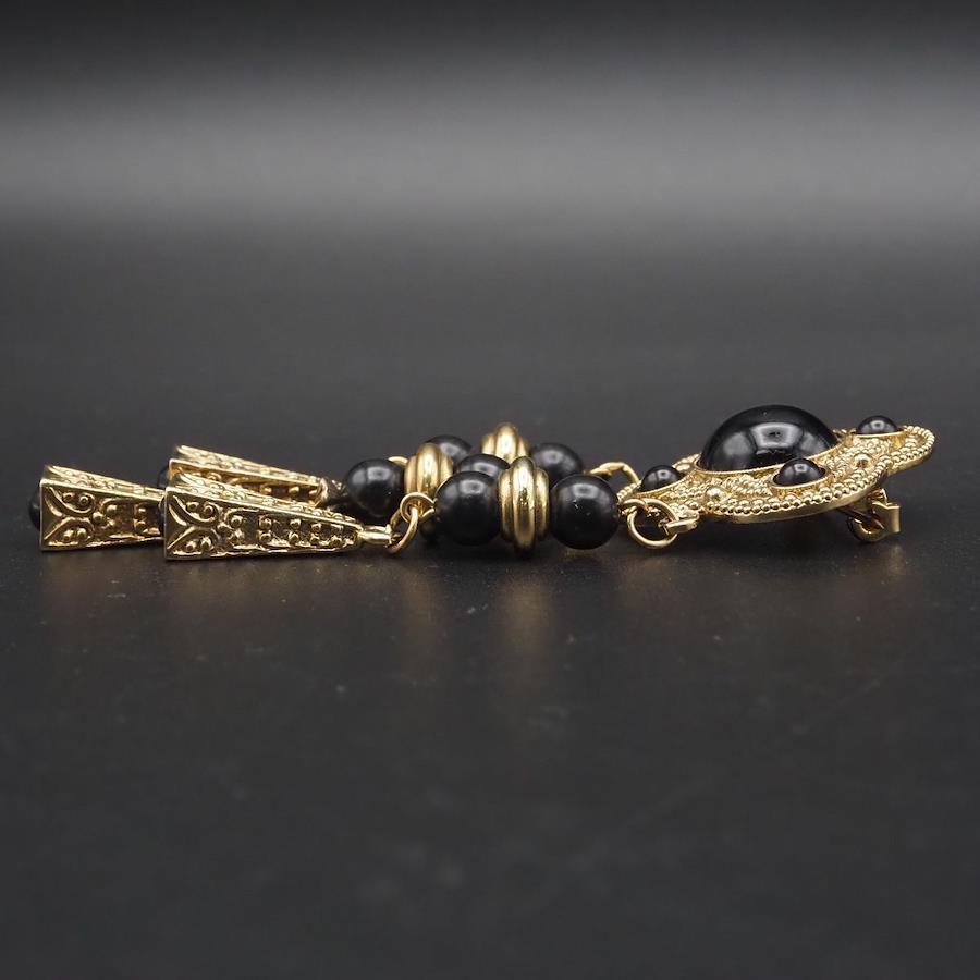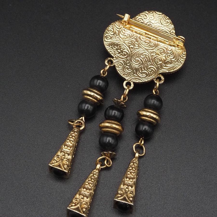 H315 ブローチ オニキス風 ゴールド デザイン コスチュームジュエリー