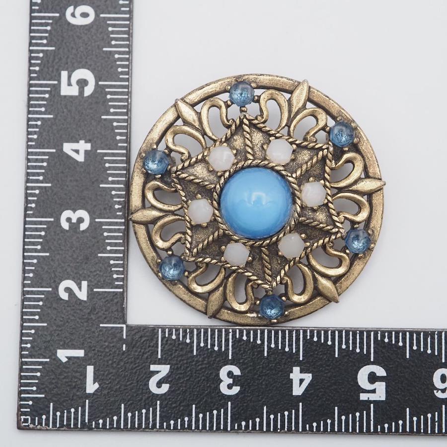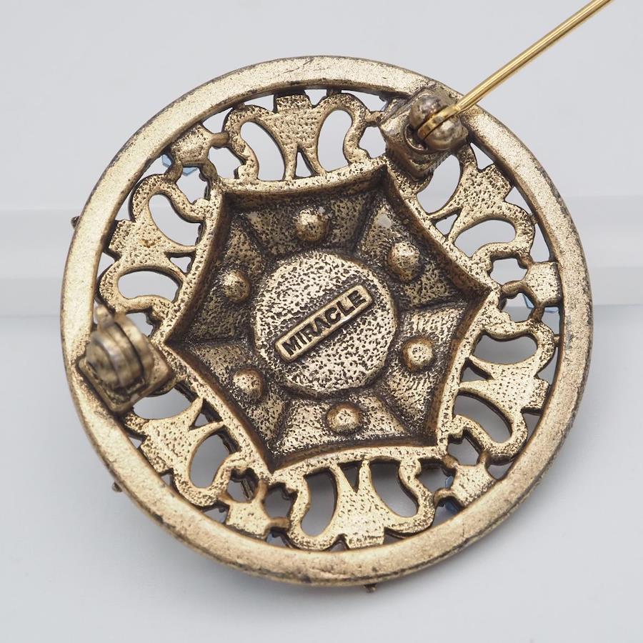 H394 イギリス ヴィンテージ MIRACLE ミラクル ブローチ 天然石風 ゴールド デザイン 英国 アンティーク