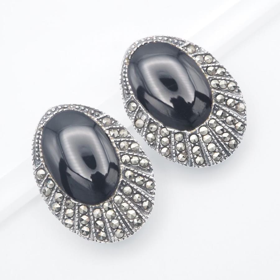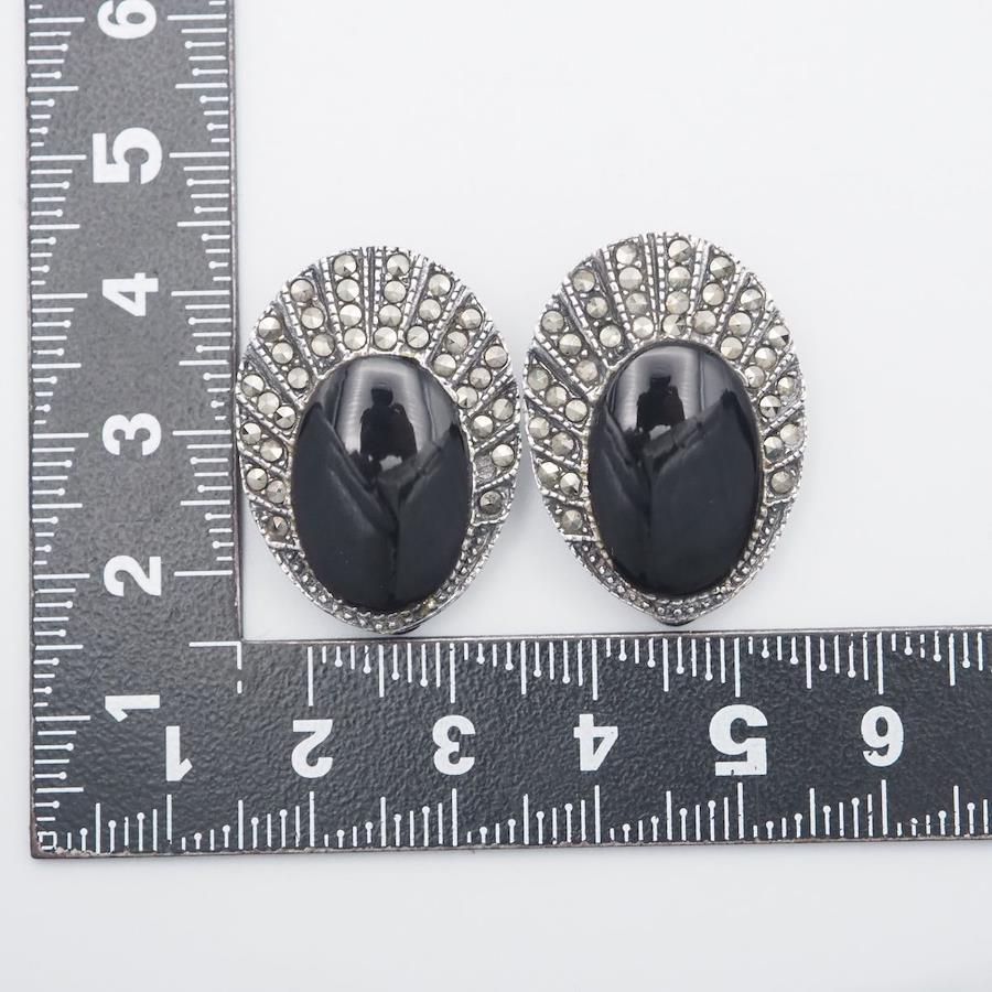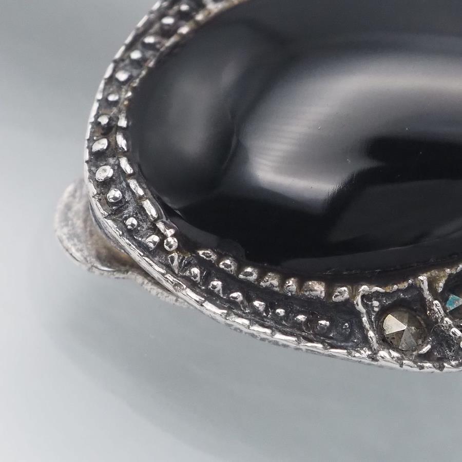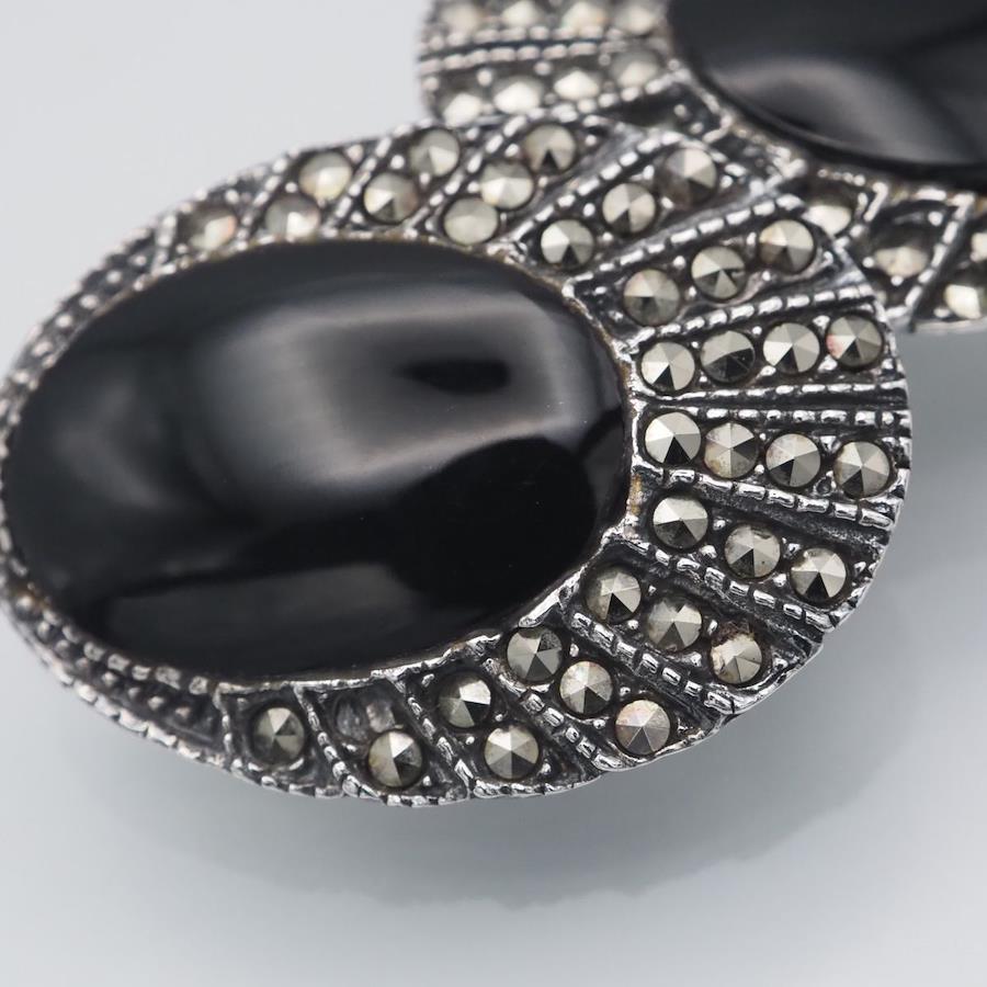 H416 オニキス マーカサイト マルカジット 925刻印 イヤリング デザイン シルバー ヴィンテージ