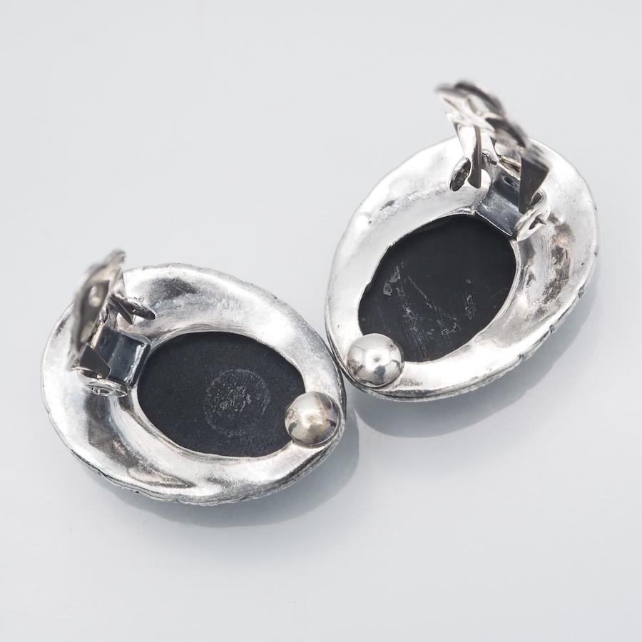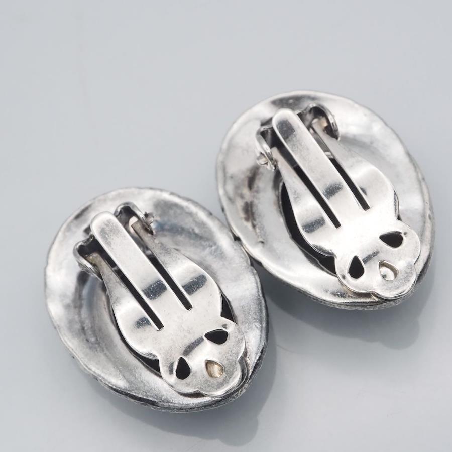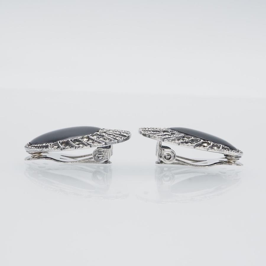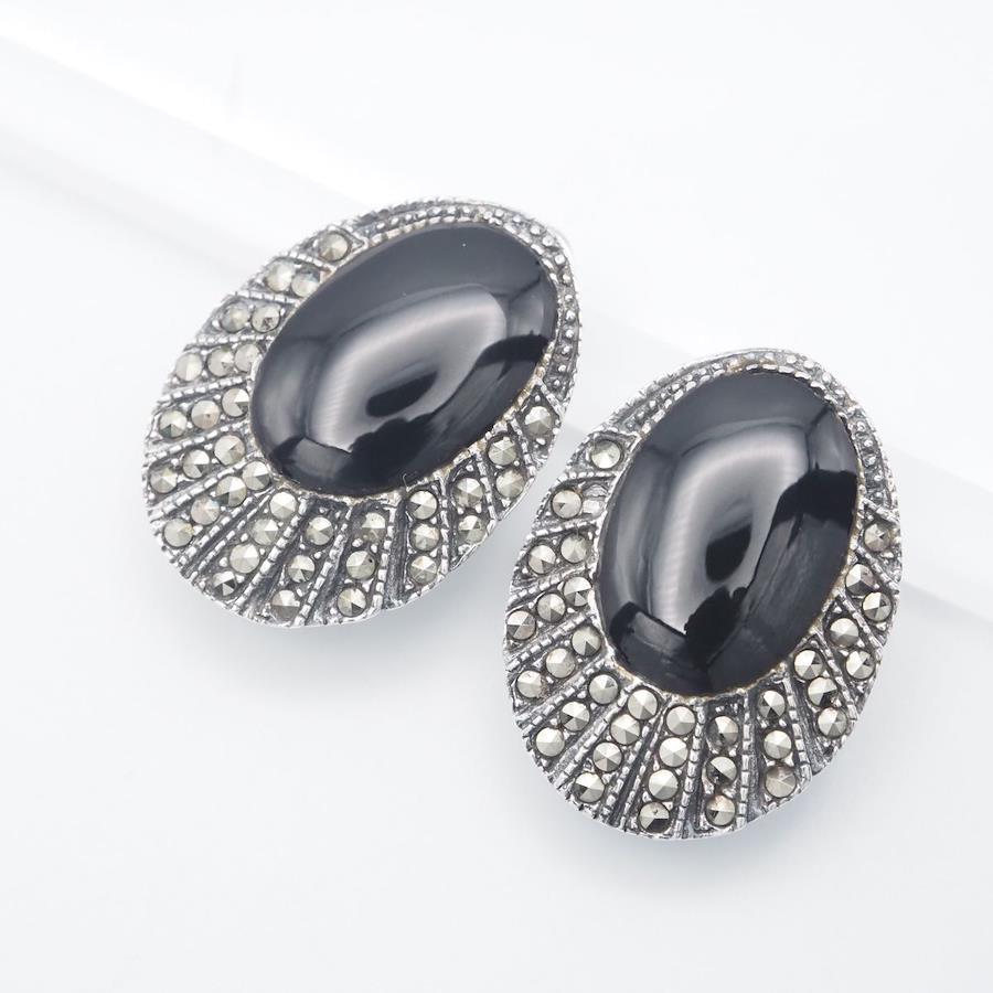 H416 オニキス マーカサイト マルカジット 925刻印 イヤリング デザイン シルバー ヴィンテージ