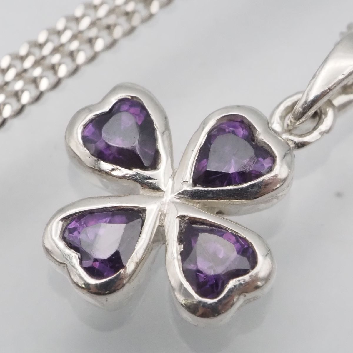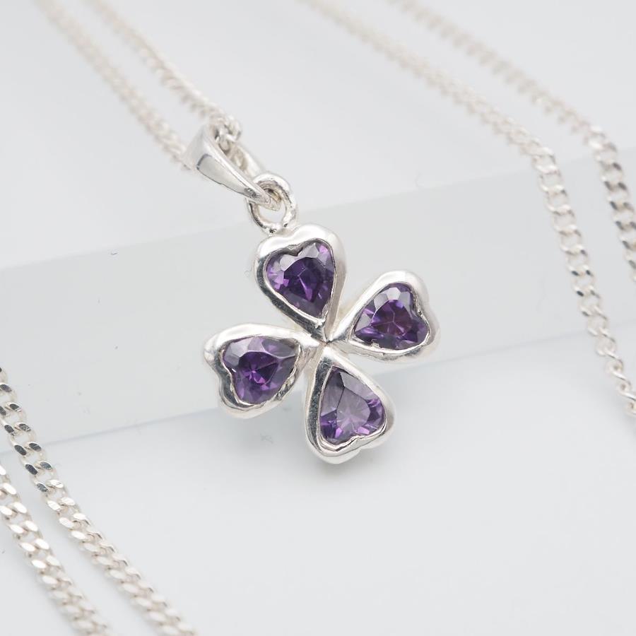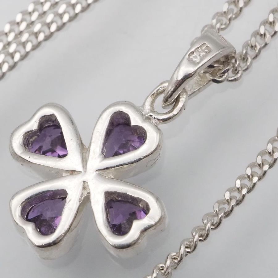 H730 アメジスト SILVER925刻印 ペンダント ネックレス クローバー デザイン シルバー 2月誕生石