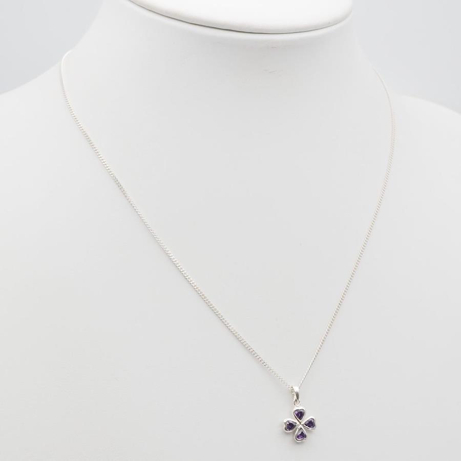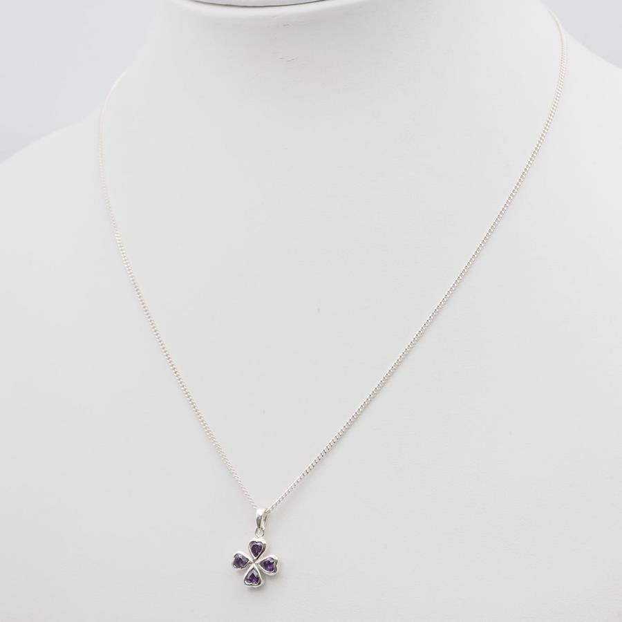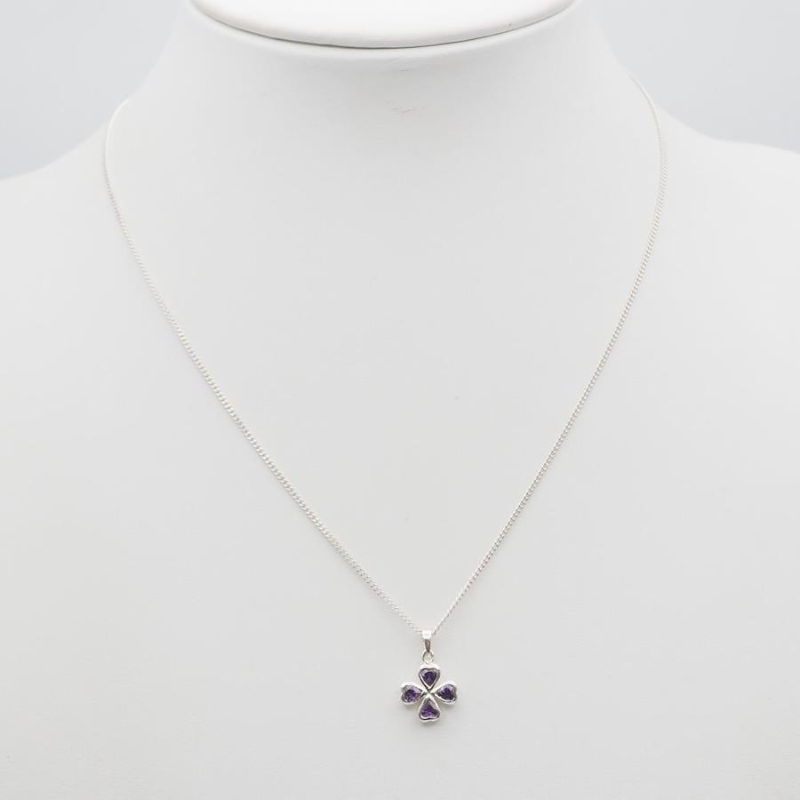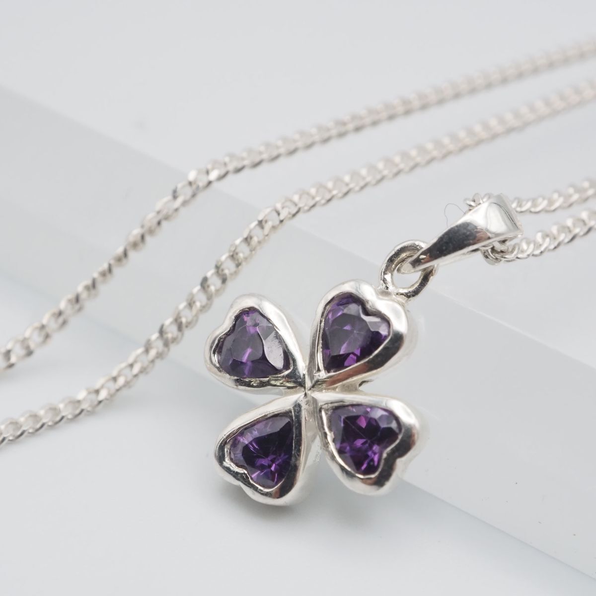 H730 アメジスト SILVER925刻印 ペンダント ネックレス クローバー デザイン シルバー 2月誕生石