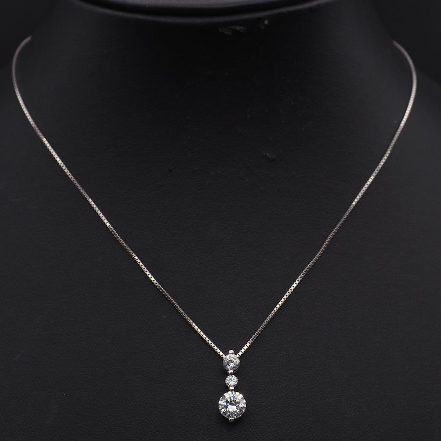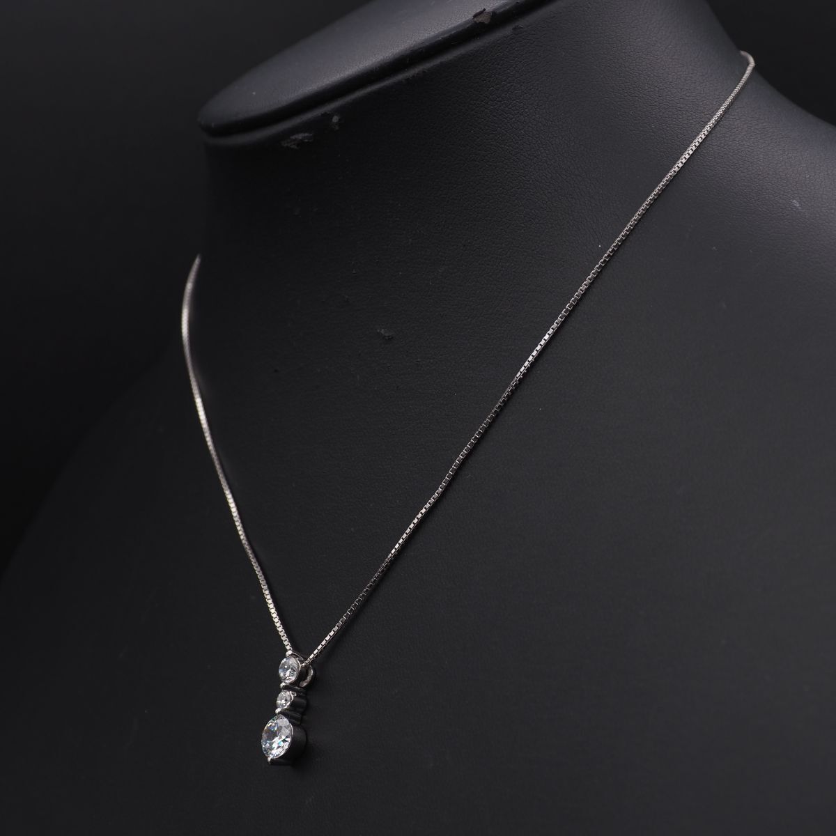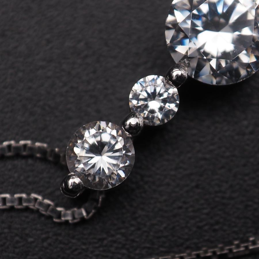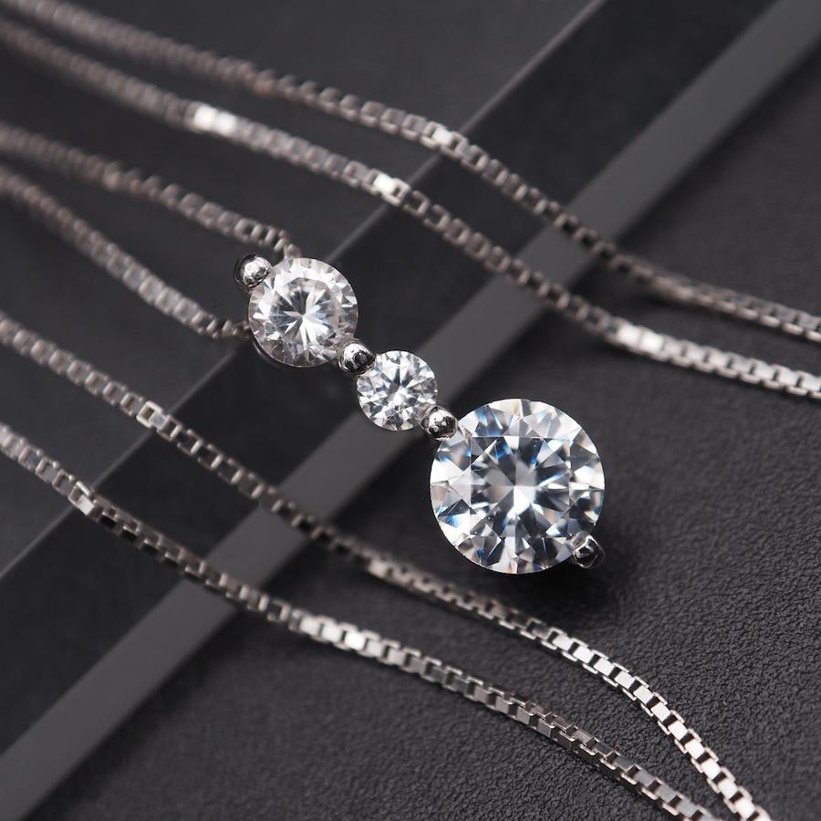 H746 ダイヤモンド風 925刻印 ペンダント ネックレス 3連 デザイン シルバー