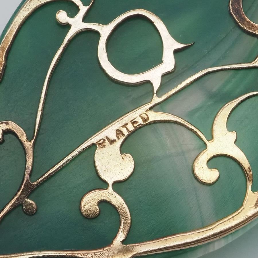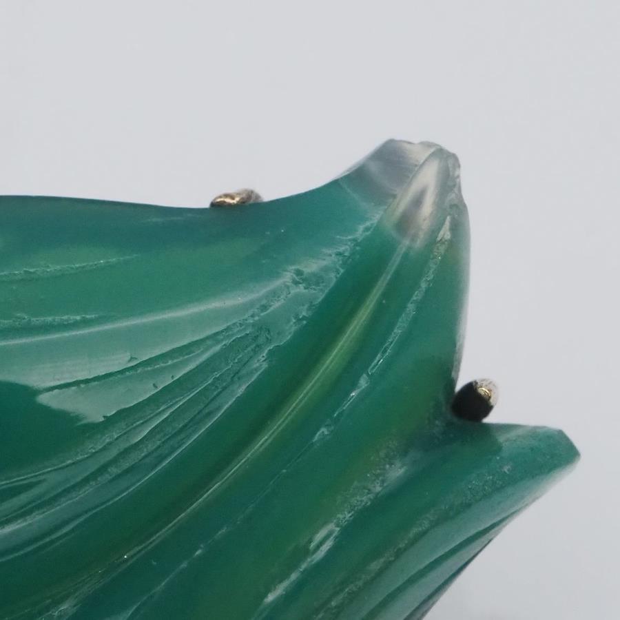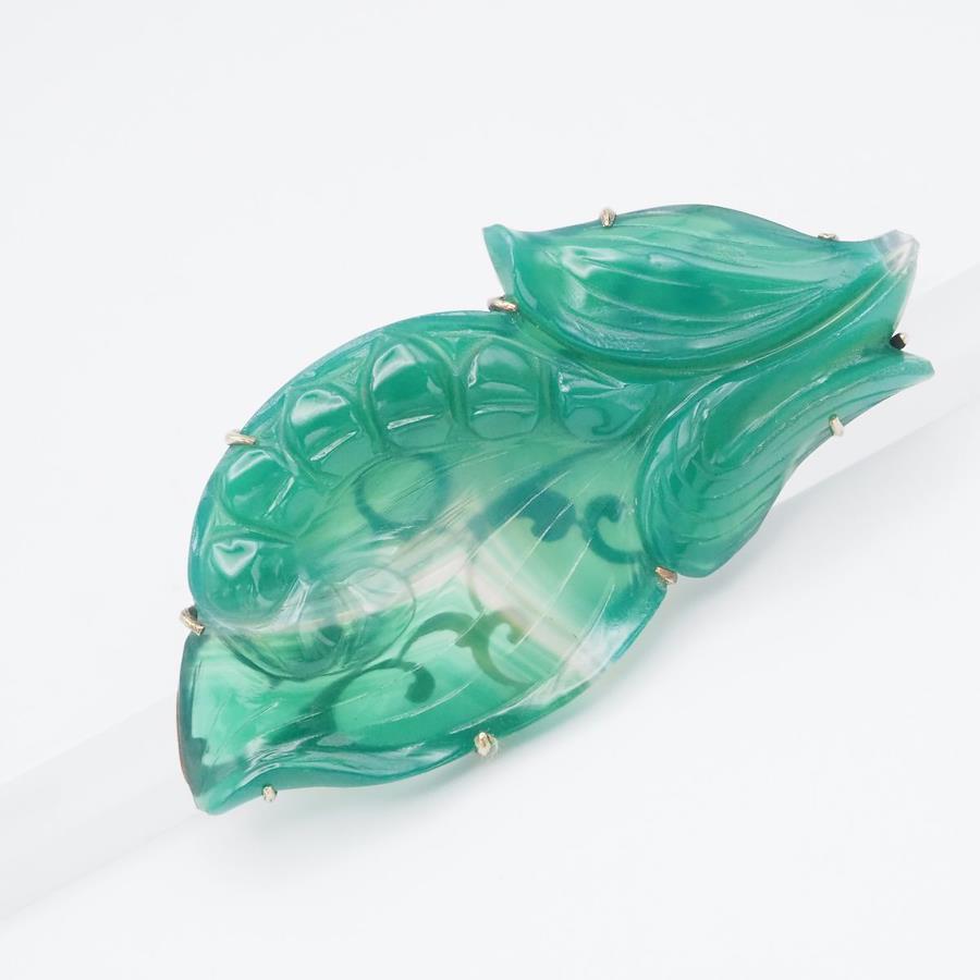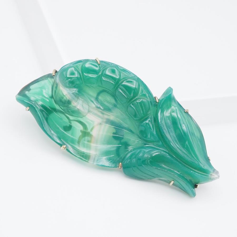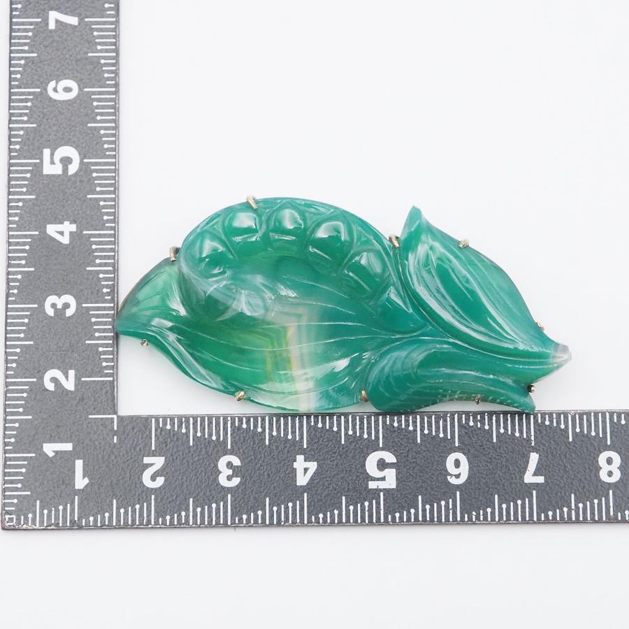 H957 グリーンアゲート 緑瑪瑙 メノウ PLATED刻印 ブローチ 花彫刻 裏細工 デザイン シルバー
